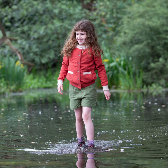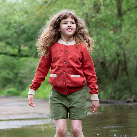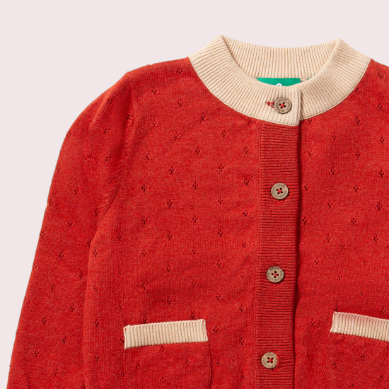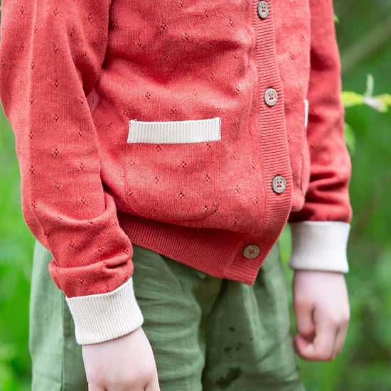 More about our From One To Another Burnt Ochre Pointelle Knitted Cardigan Inspired by handmade jumpers that are passed along from one child to another, our classic organic cotton knitwear is the perfe…
