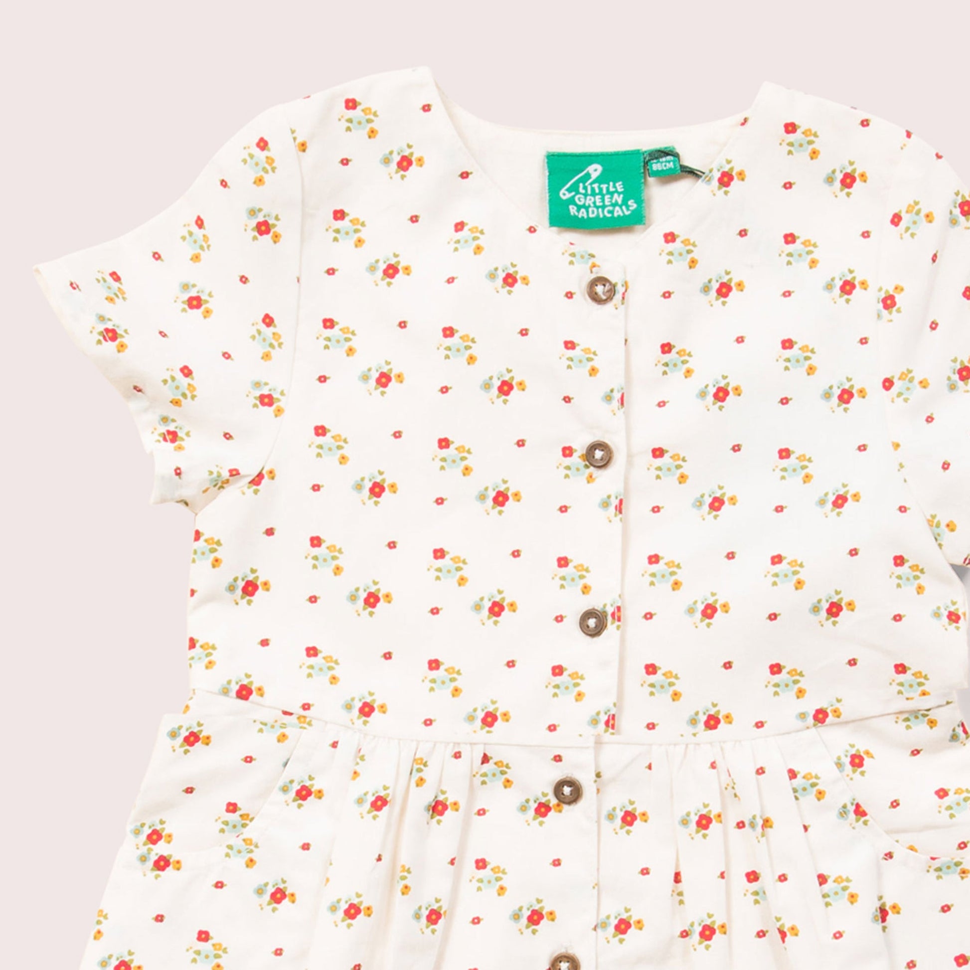 100% Organic Fairtrade Poplin A lovely, loose fitting dress for everyday pla made with breathable, soft double cloth fabric to will keep them cool in the summer sun. Extra Details: - Buttons along …