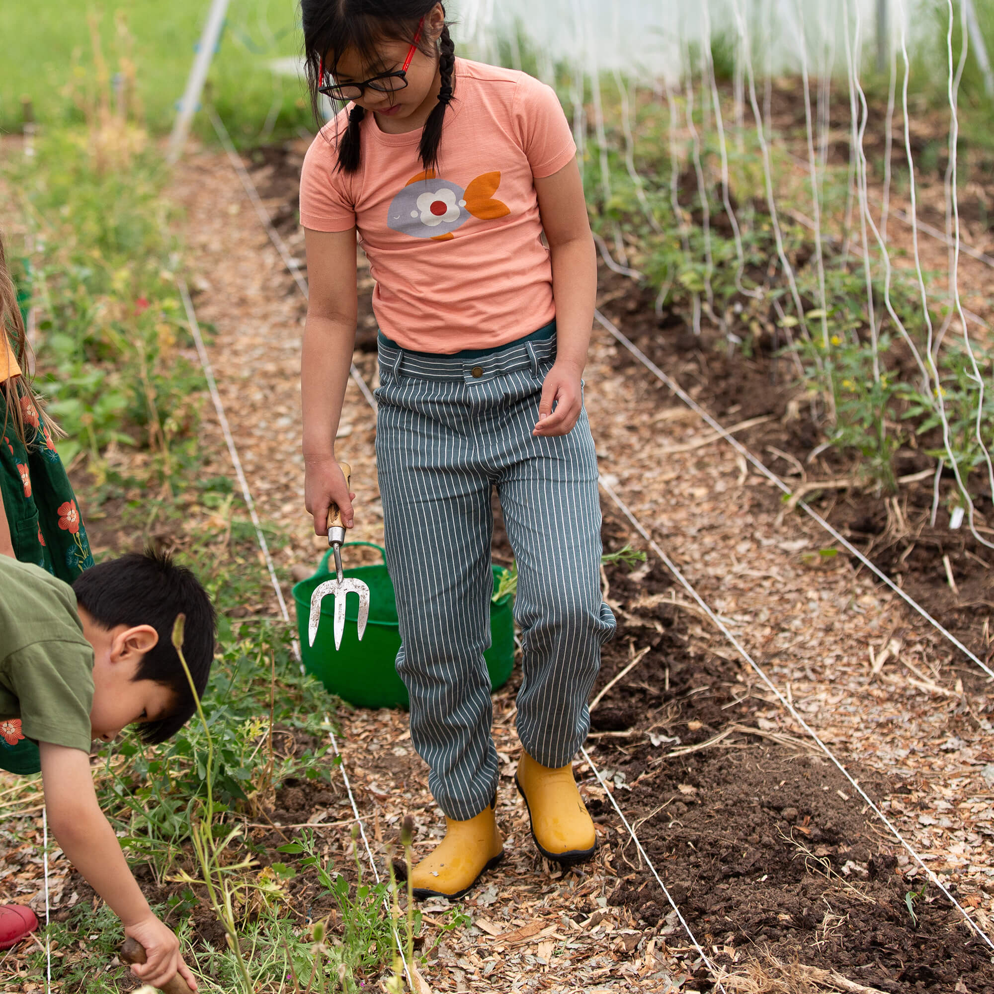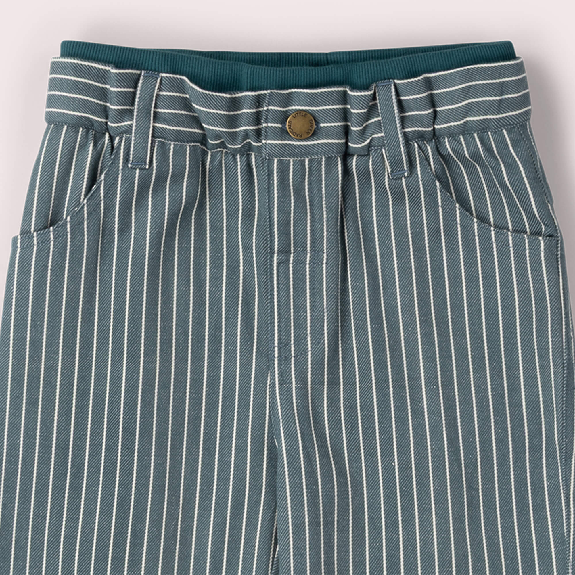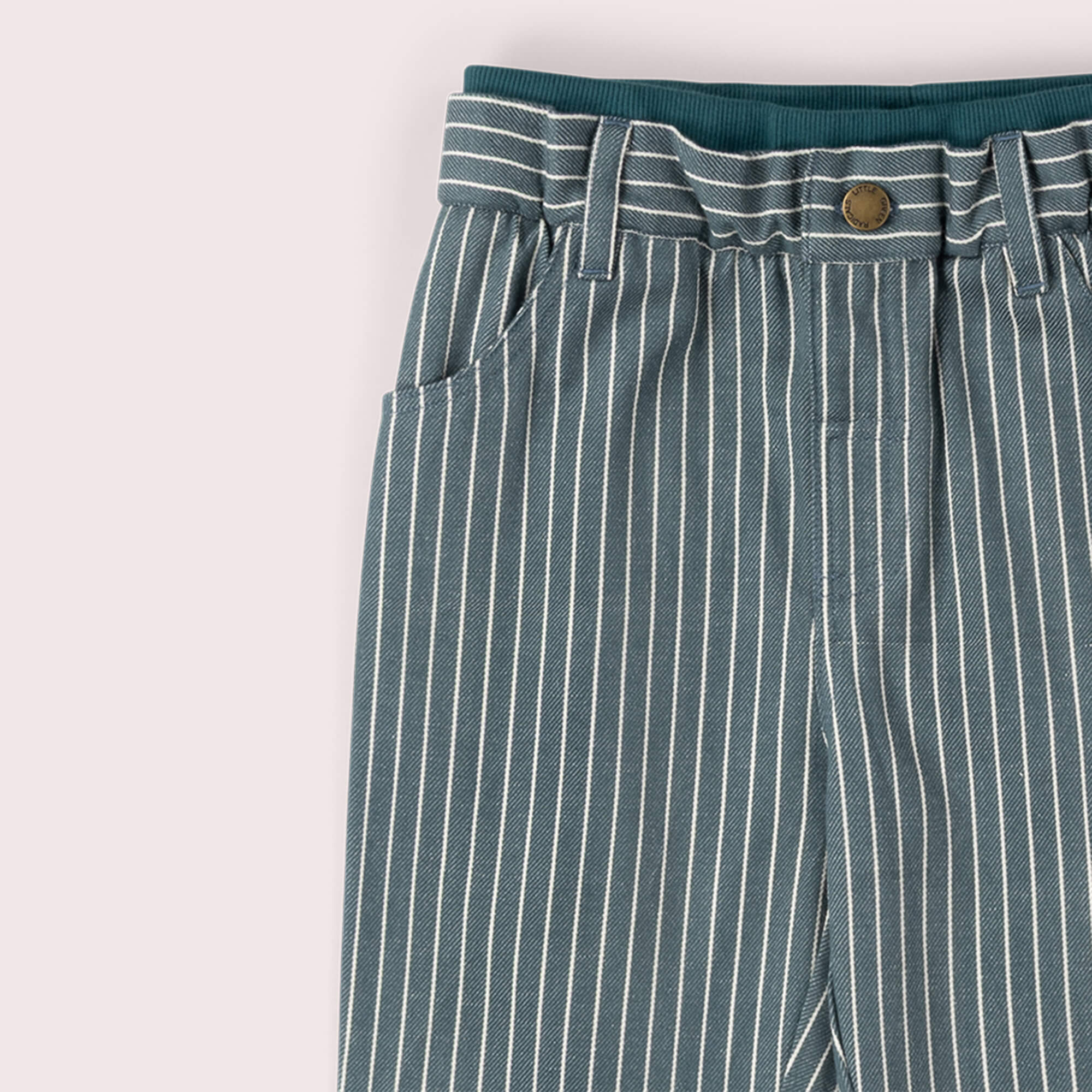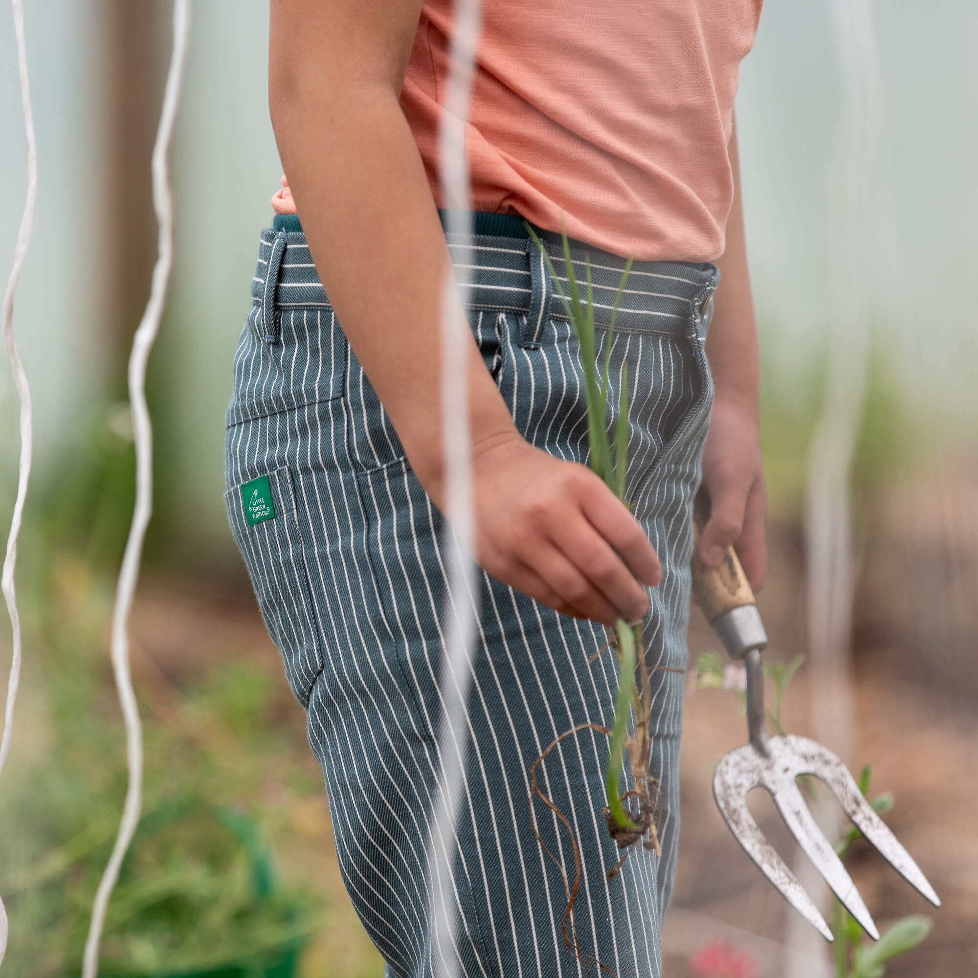 Comfy trousers to wear day after day! Made with long-lasting organic cotton fabric so they can be passed along from one child to another. Loose fit to give lots of room for movement, plus extra space for cloth covered nappies up to 3 years.