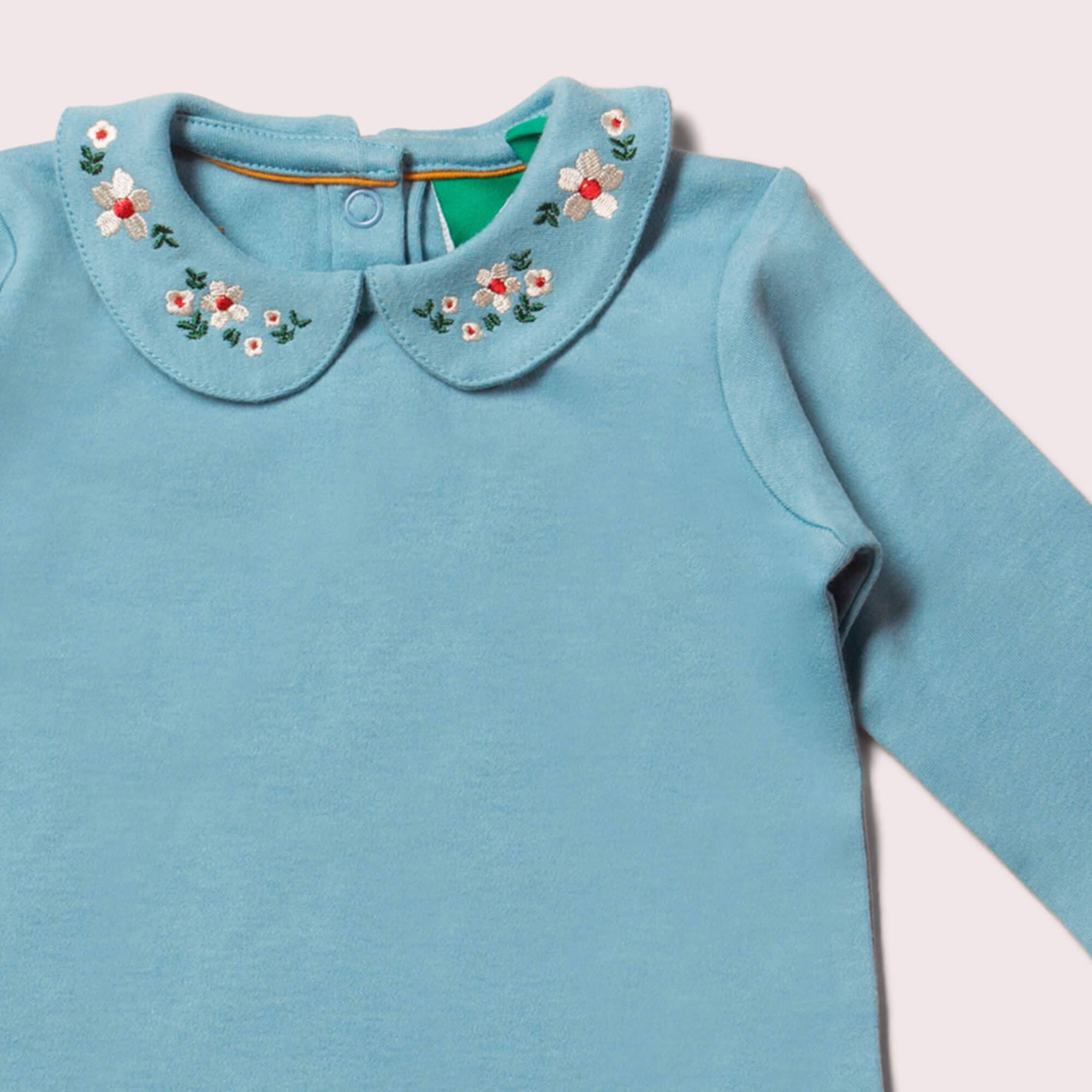 - Round Peter Pan collar with delicate embroidery, lovely for wearing under dresses or dungarees