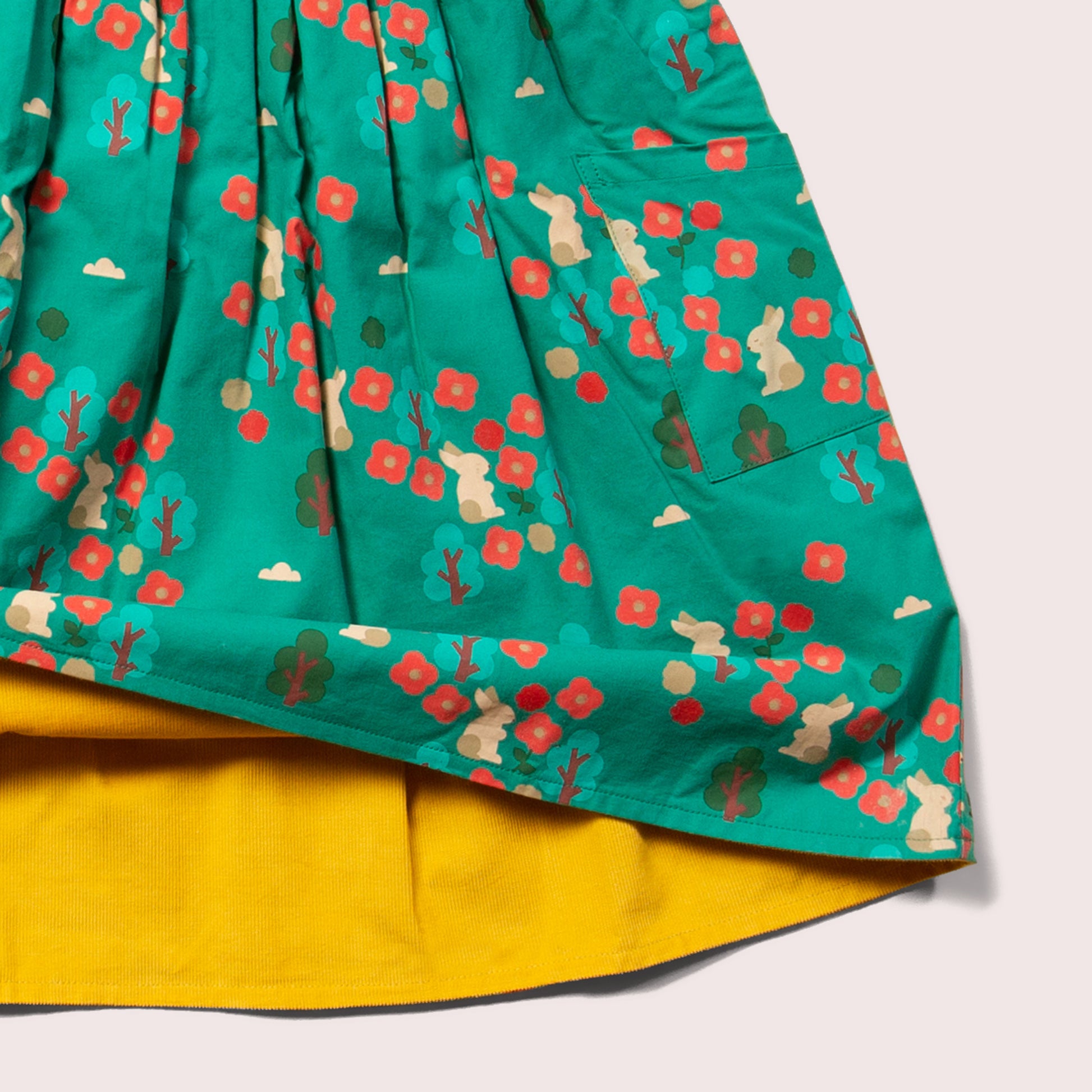 This is a beautifully comfy dress to wear, with a wide twirly skirt that gives lots of room for movement plus little side pockets (hurray!) to keep their precious things. Plus it's reversible, so you get two designs in one! The cosy double layer makes this the perfect dress to wear day after day all through the winter. Match with a blouse or long sleeve top for a snuggly autumn outfit.
