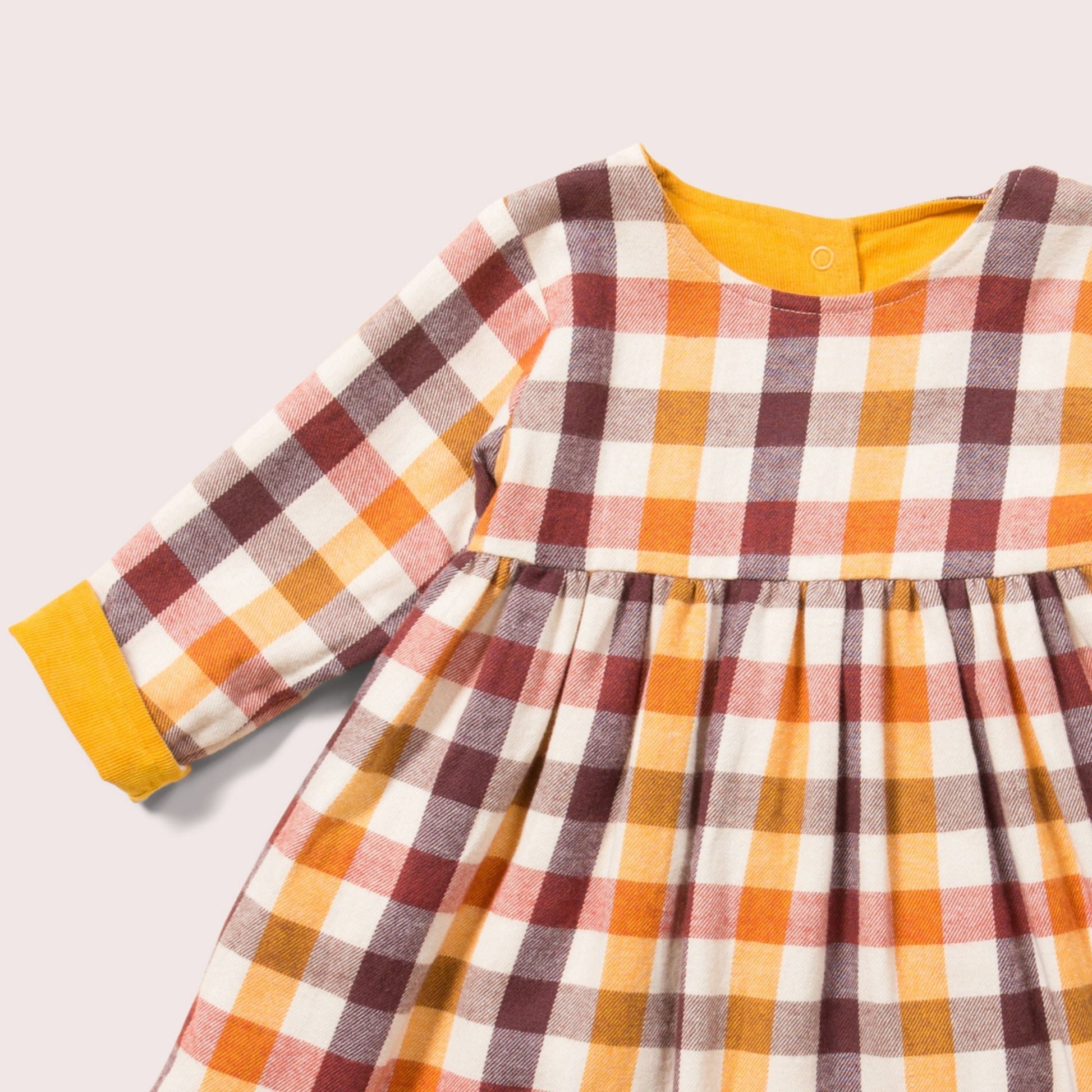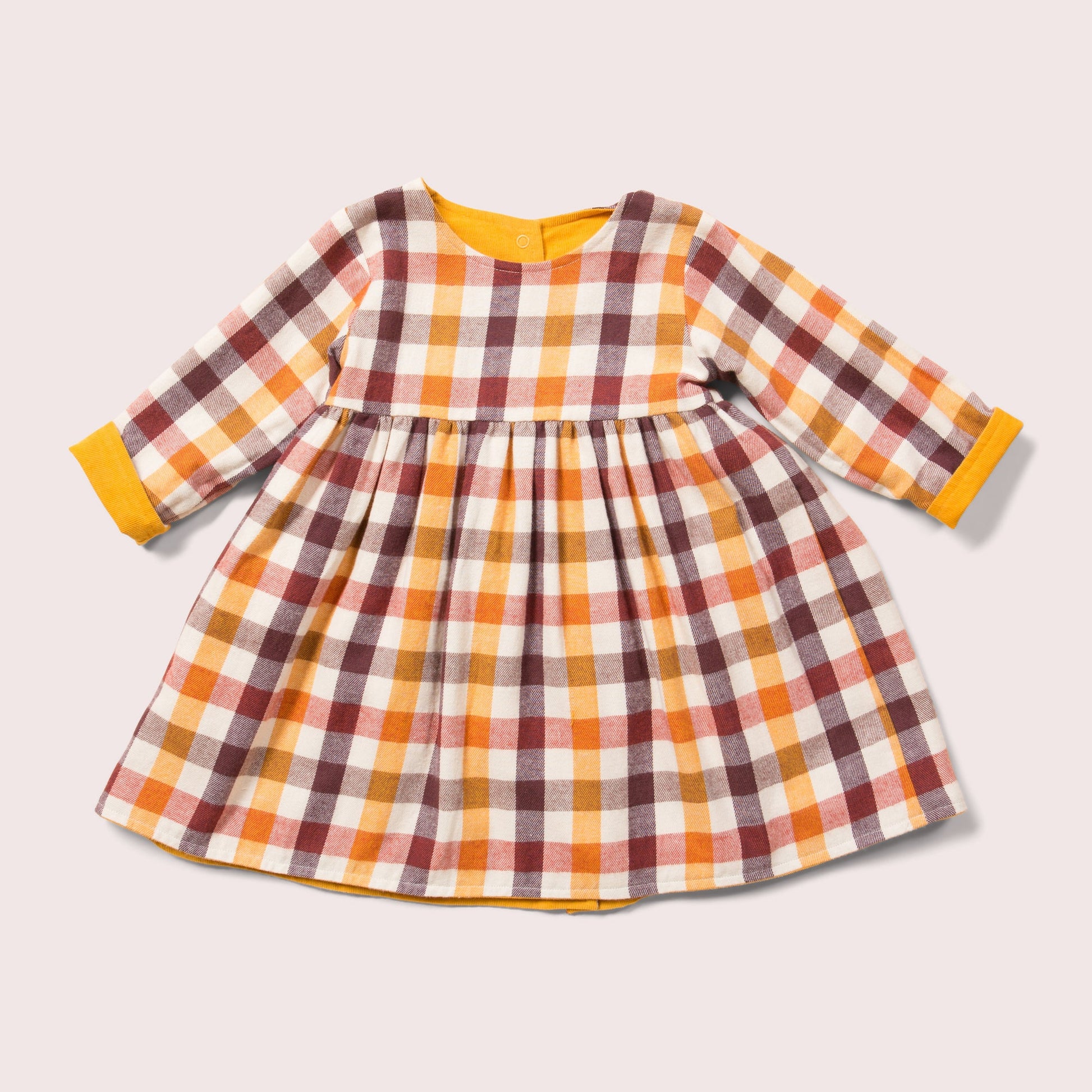 3 styles in 1! This classic dress is reversible so can be worn day after day. It has cosy cord on one side (with little pockets on the front) and soft brushed cotton on the reverse. The double layer makes it lovely and warm, so it's the perfect dress to wear from Autumn all the way to Spring. We've used fantastic quality, long-lasting organic cotton fabric, and timeless a design, so it's a lovely style for everyday wear or special occasions.