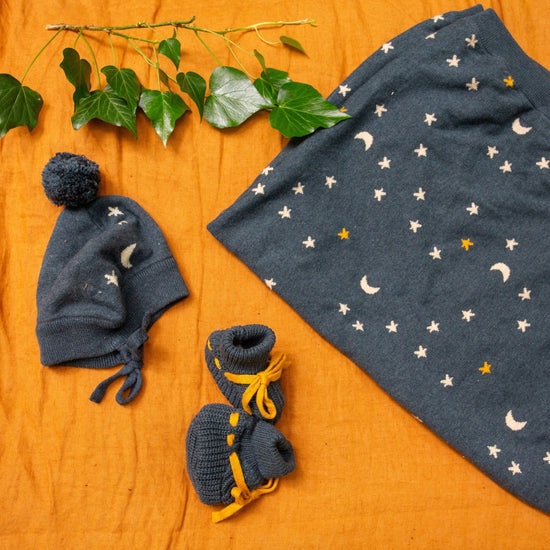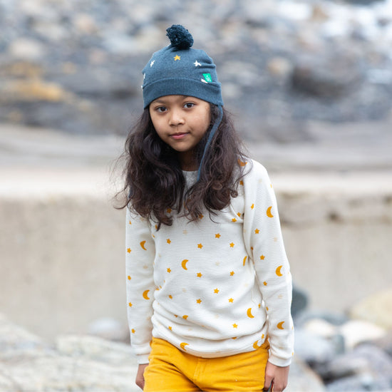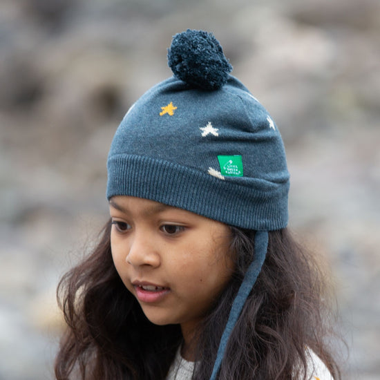 Cosy hats to keep them warm all winter long! Made from 100% organic true knit cotton, this hat will feel beautifully soft against their skin. They come with handy covers and ties to keep little ears warm, plus a fun pom pom on the top! Pair with our matching knitted styles.