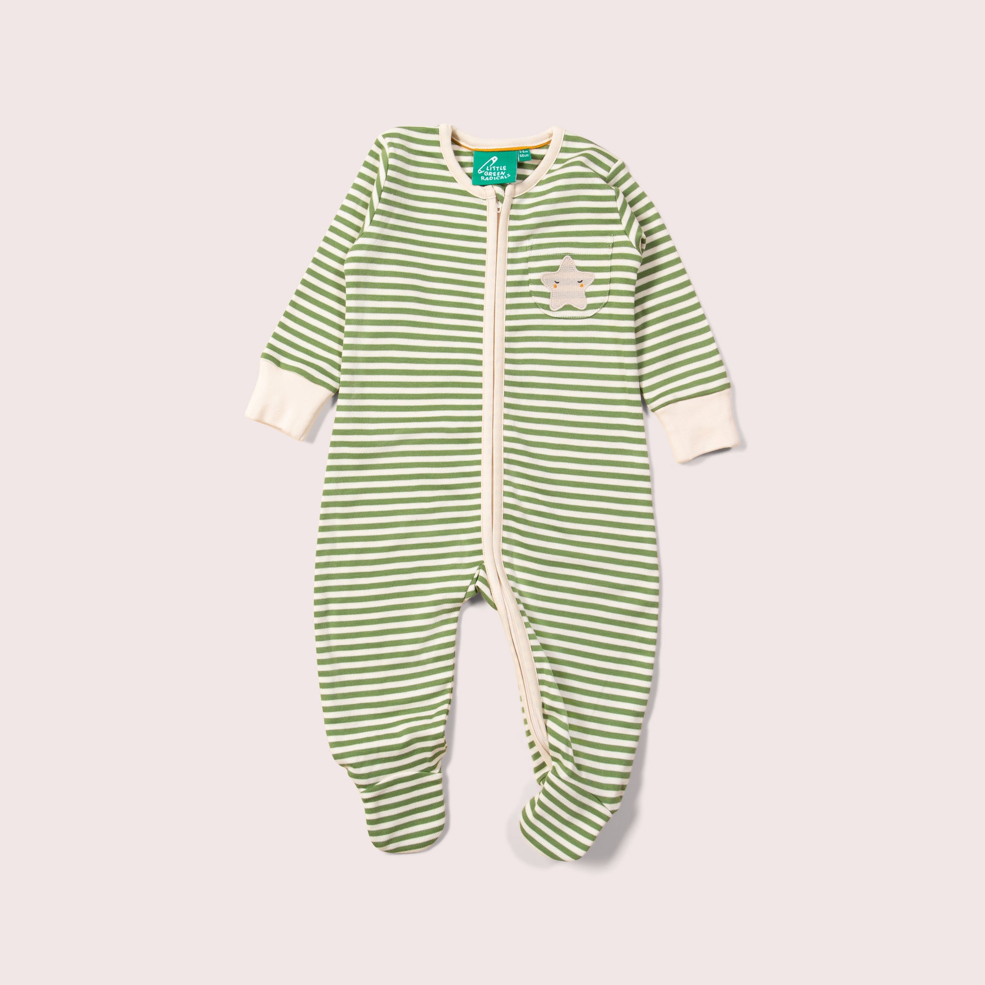 Green Star Applique Zip Babygrow