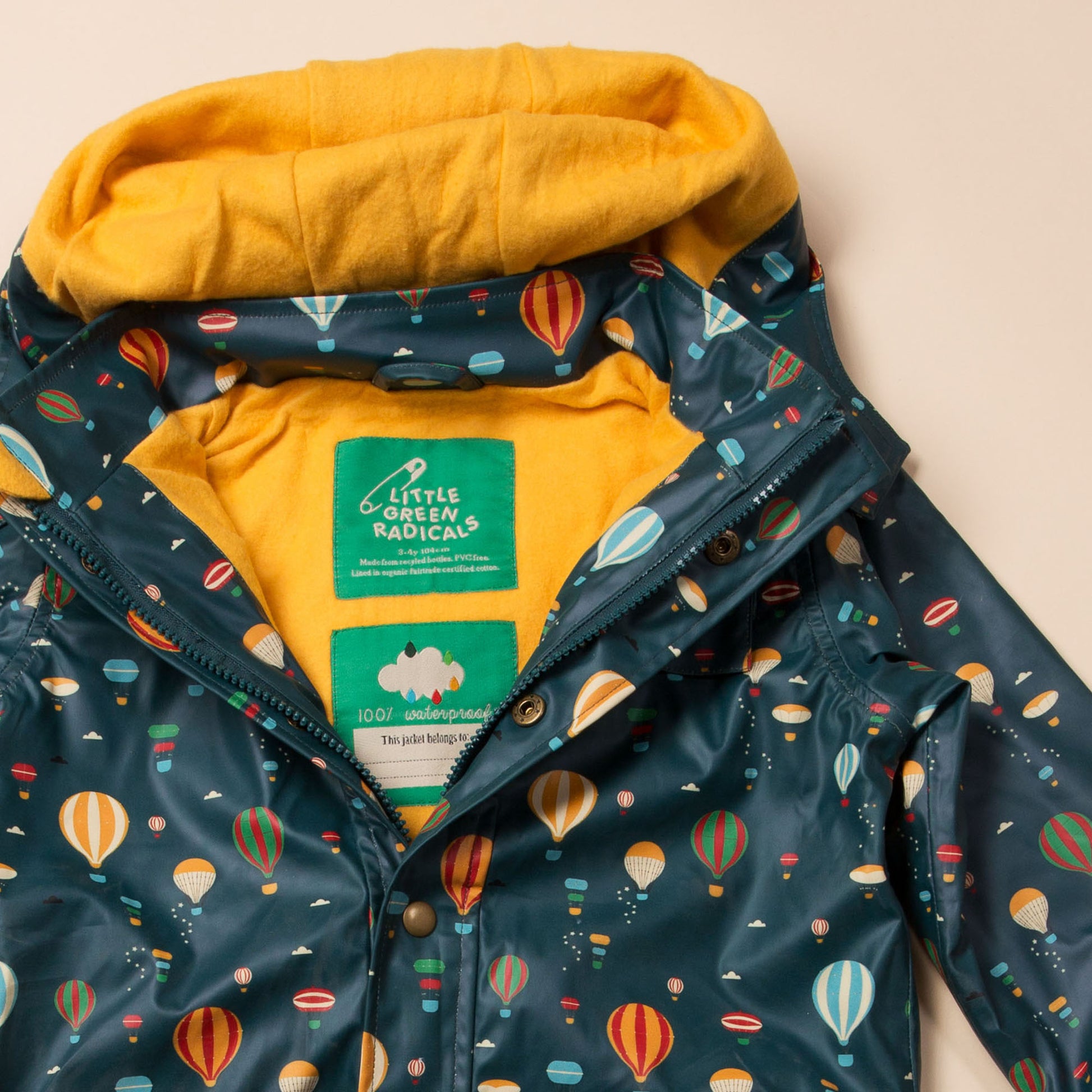 Designed to protect little adventures from the elements, our navy Higher Ground recycled raincoat is made using a fully waterproof special performance fabric that's been constructed using plastic bottles! We've designed our raincoats to have a waterppoof rating of 5,000mm which means it's waterproof under very high pressure making it perfect for heavy rain and wet snow. They also have a soft organic and Fairtrade cotton lining, so they'll stay nice and snug on cooler days.