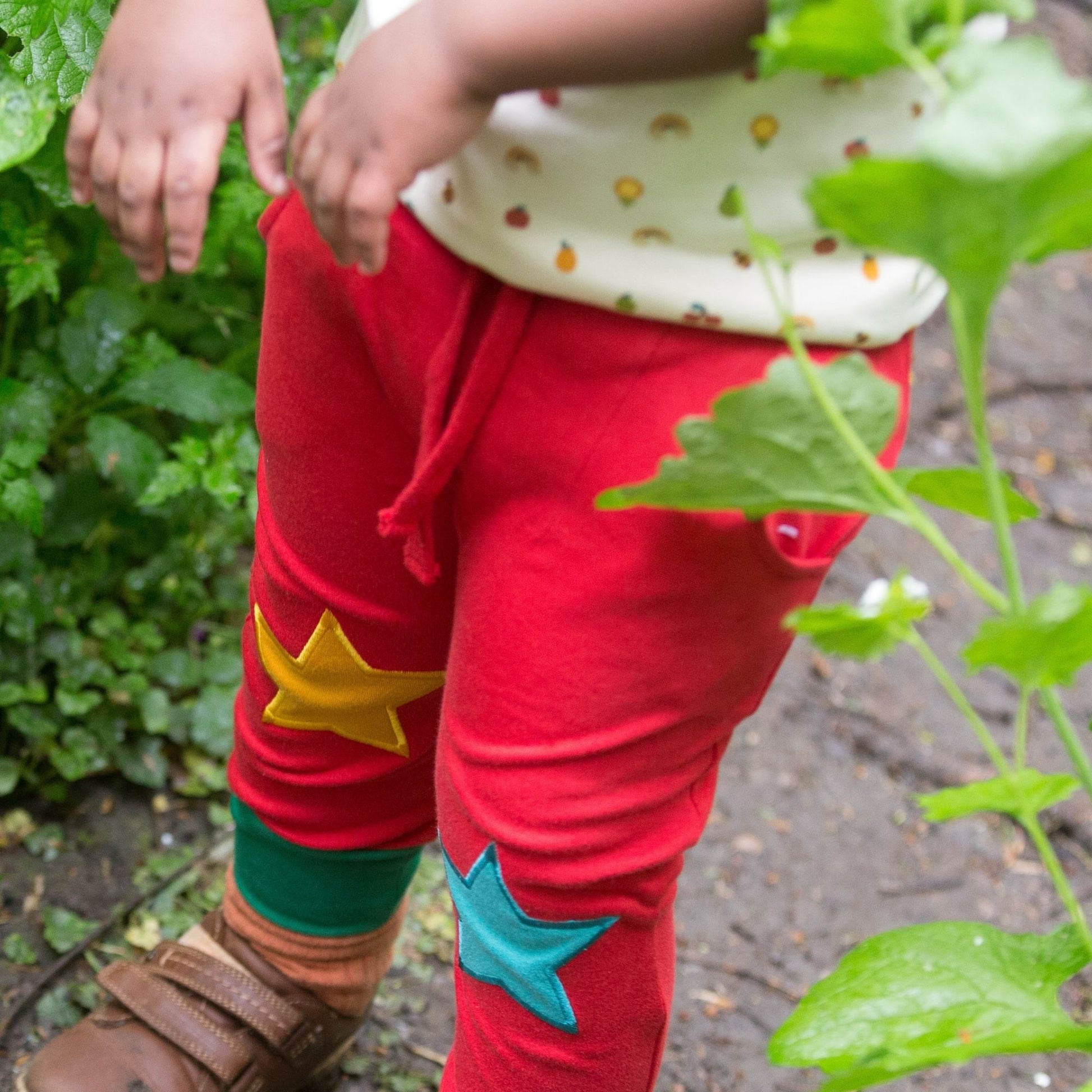 100% Organic & Fairtrade Interlock Cotton Super duper red star joggers made from a fantastic quality, amazingly soft, 100% GOTS certified organic cotton. Little ones will love the colourful star p…