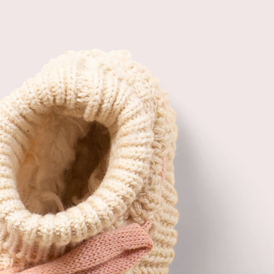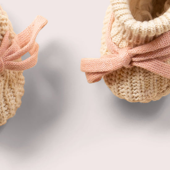-A beautiful gift for a new baby, these lovely little booties will keep tiny toes toasty! They're made using organic cotton which is kind and gentle on even the most delicate baby skin and have a knitted fabric on the outside and soft, snuggly sherpa inside. For a welcome to the world or baby shower gift, pair with a matching knitted baby styles.