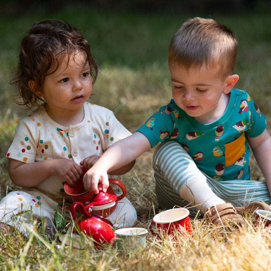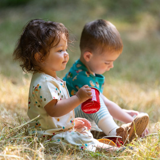 This lovely summery romper comes with short sleeves and cropped legs, perfect for warmer weather. It's made from 100% organic cotton that will feel beautifully soft against your child's skin. We've left some extra room for cloth covered nappies, and used nickel-free poppers on the legs for fuss free nappy changes.