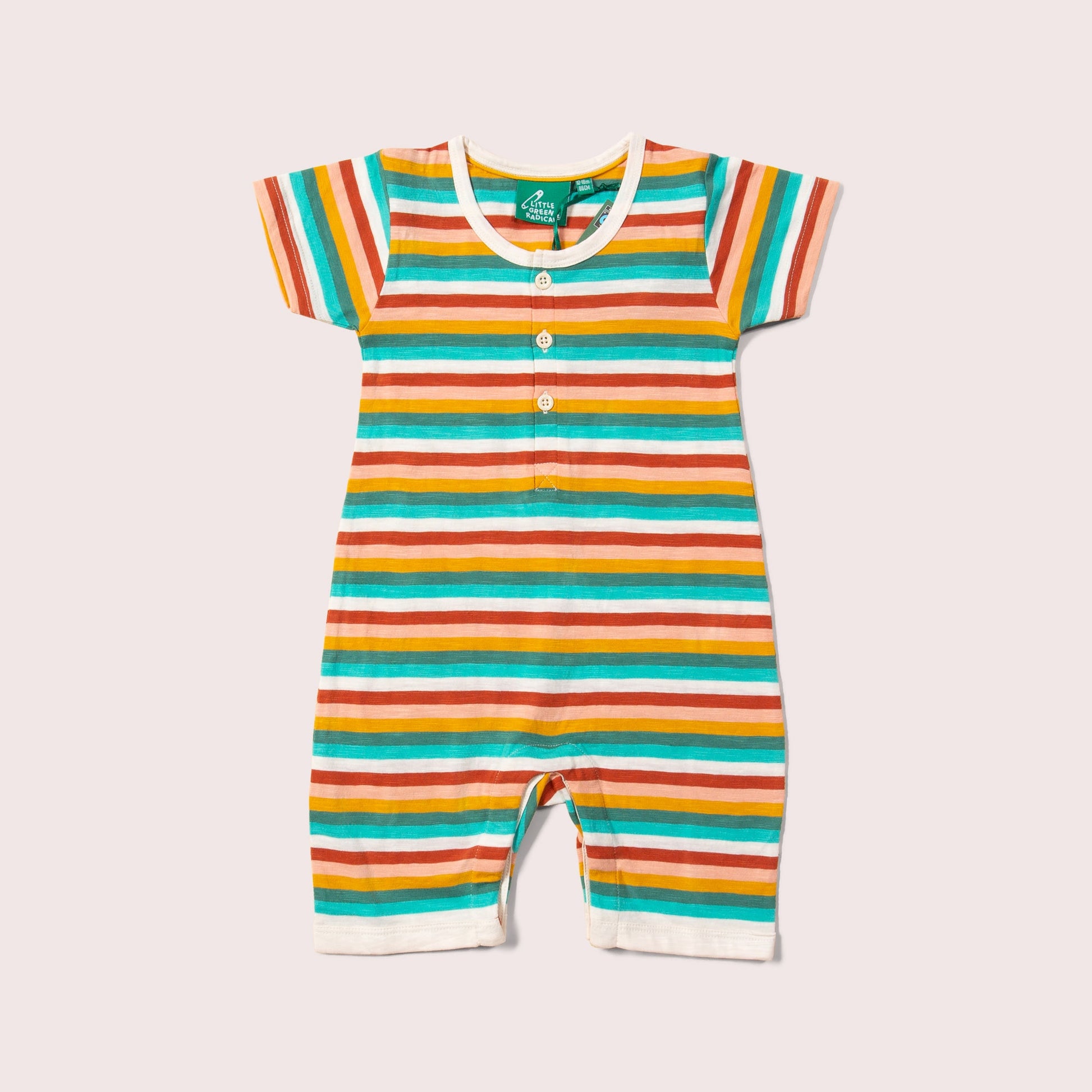More about our Rainbow Striped Organic Summer Romper This lovely summery romper comes with short sleeves and cropped legs, perfect for warmer weather. It's made from 100% organic cotton that will feel…