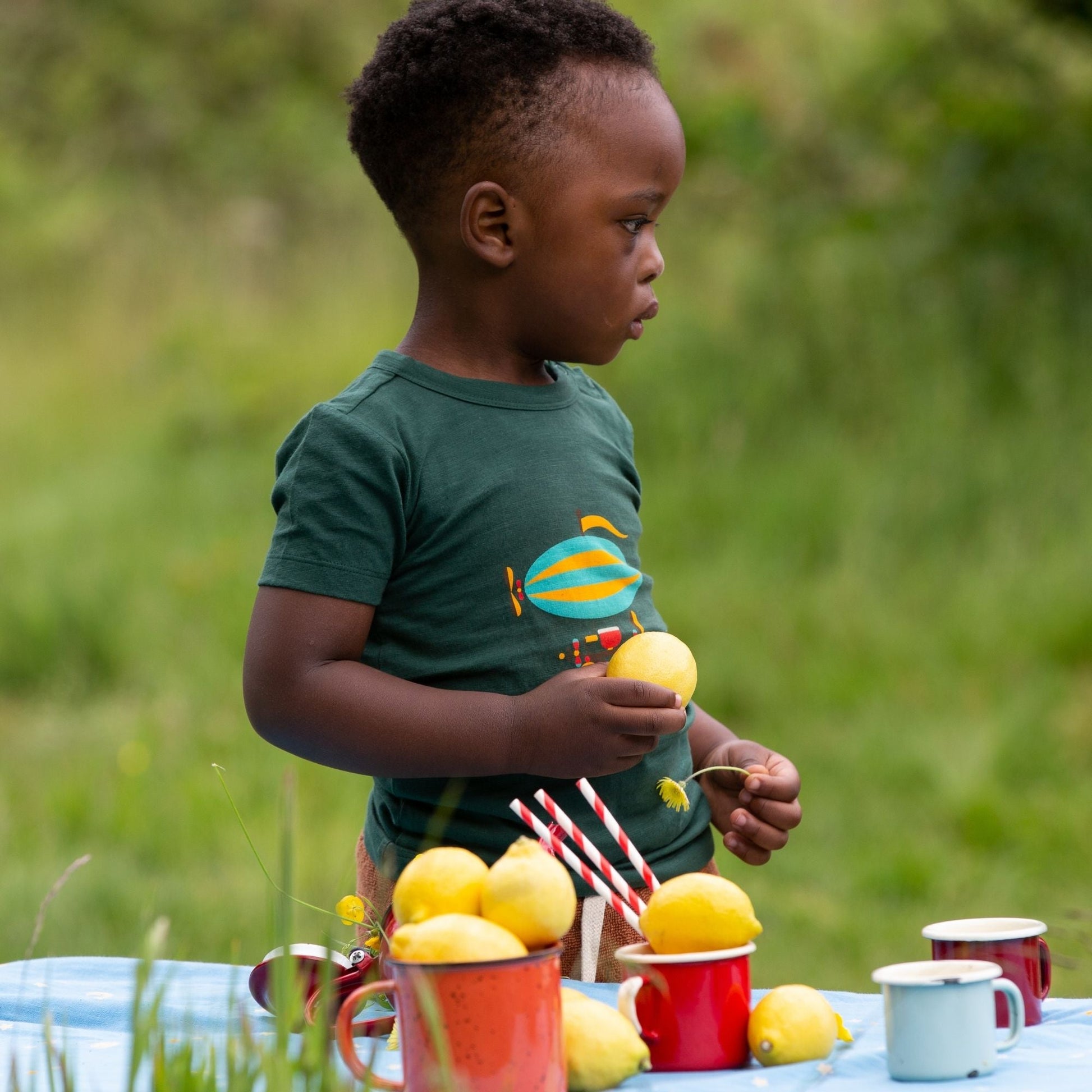 Beautifully soft and comfy to wear, this might just be their new favourite t-shirt! It comes with a colourful print they'll love to wear, poppers on one shoulder for fuss-free dressing and is made from light and breathable organic cotton fabric that will keep them cool all summer long. Pair with our shorts for an adventure-ready outfit.