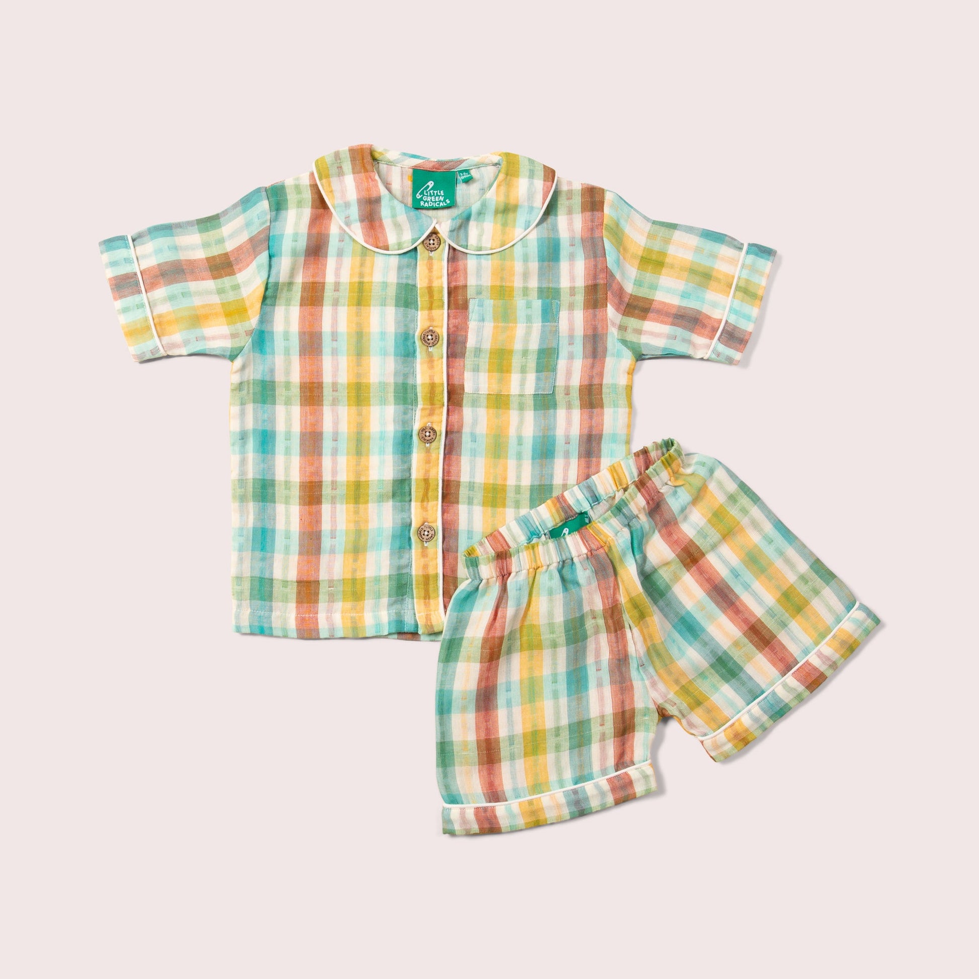 More about our Rainbow Double Cloth Button Through Pyjama Short Set Inspired by traditional nightwear, this classic pyjama shorts set is made from soft, organic cotton that will keep them comfy and co…