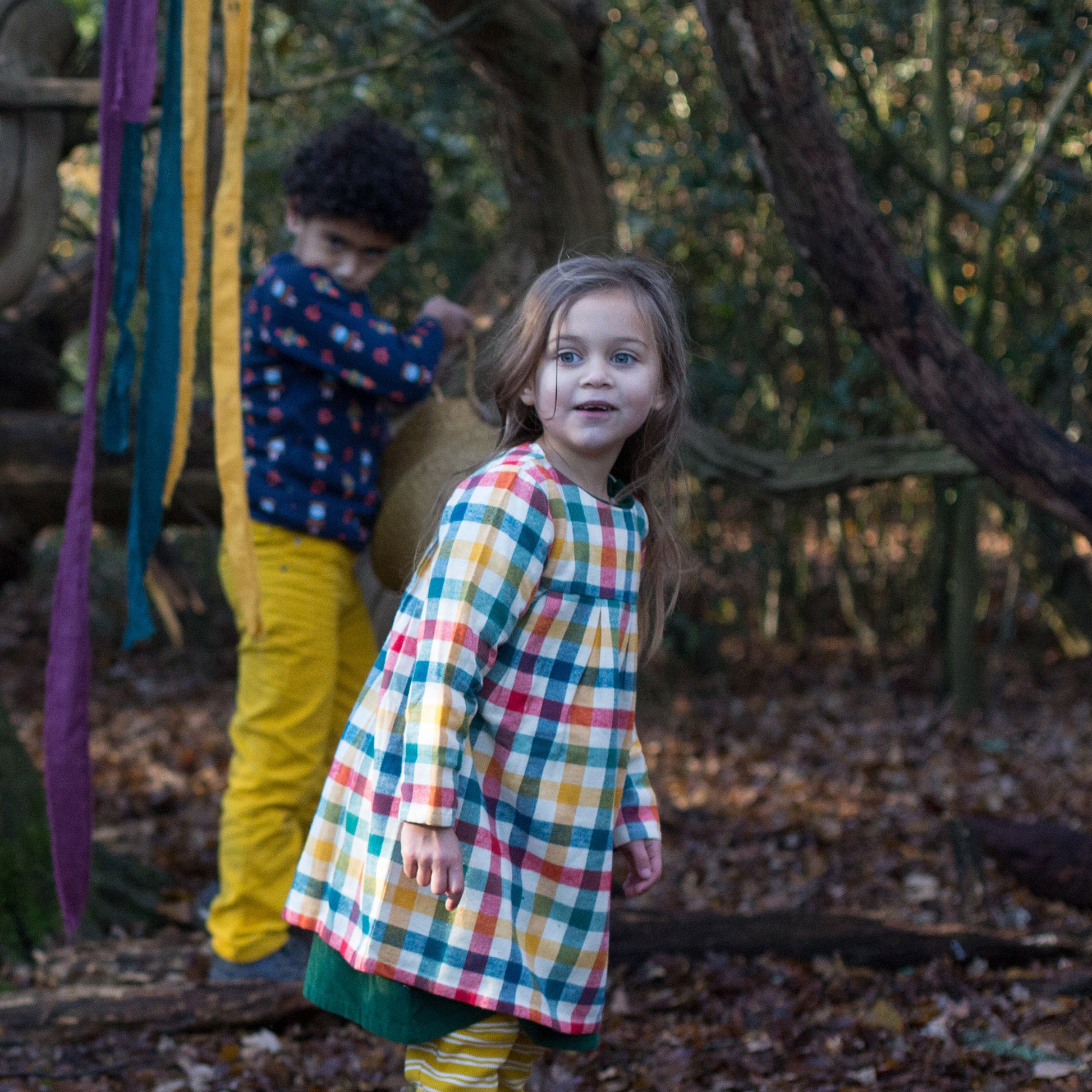 Autumn Rainbow Check Smock Dress