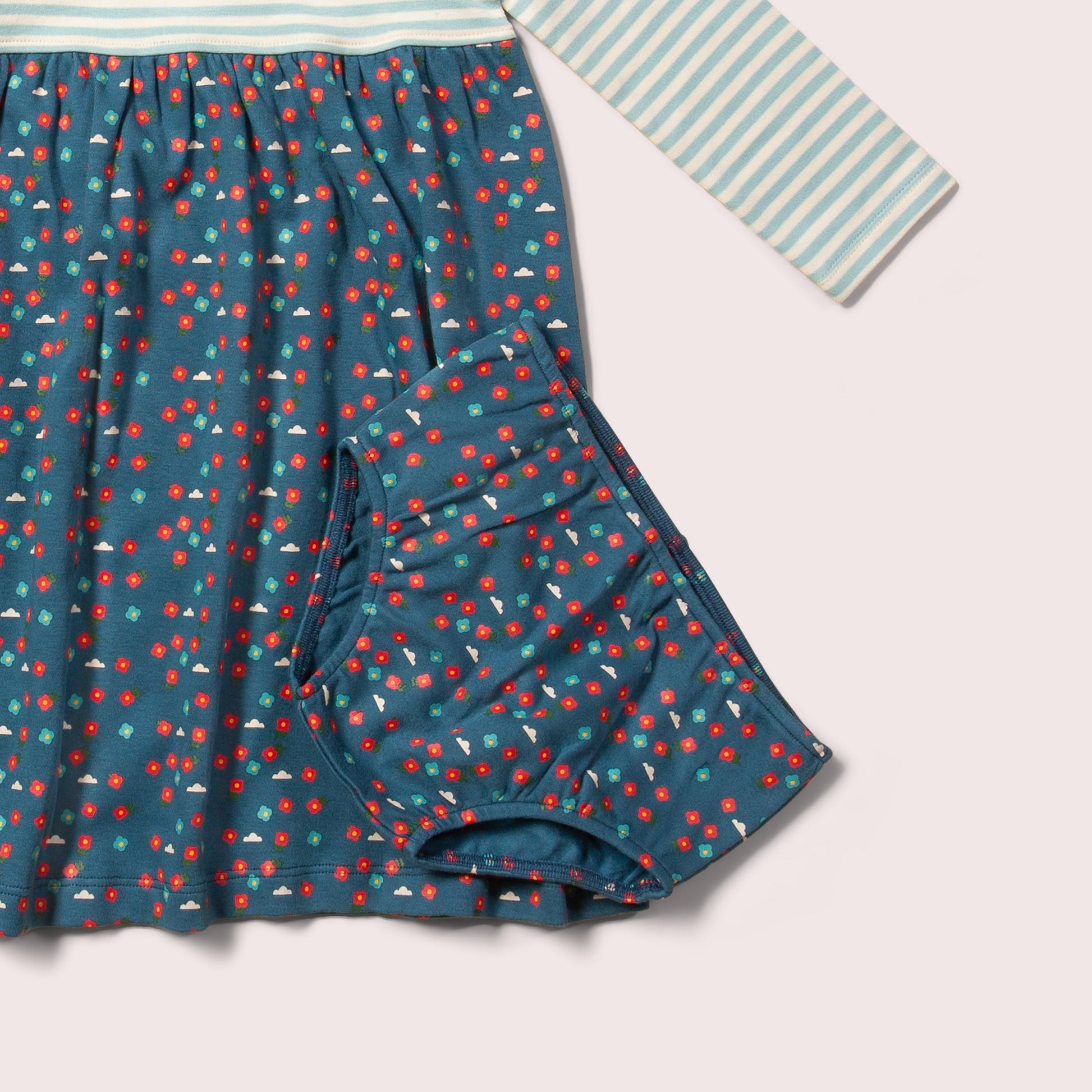More about our Blue Flowers Easy Peasy Long Sleeve Dress This dress is easy peasy to put on and so comfy, your little one will want to wear it every day! It's made using long-lasting organic interlock…