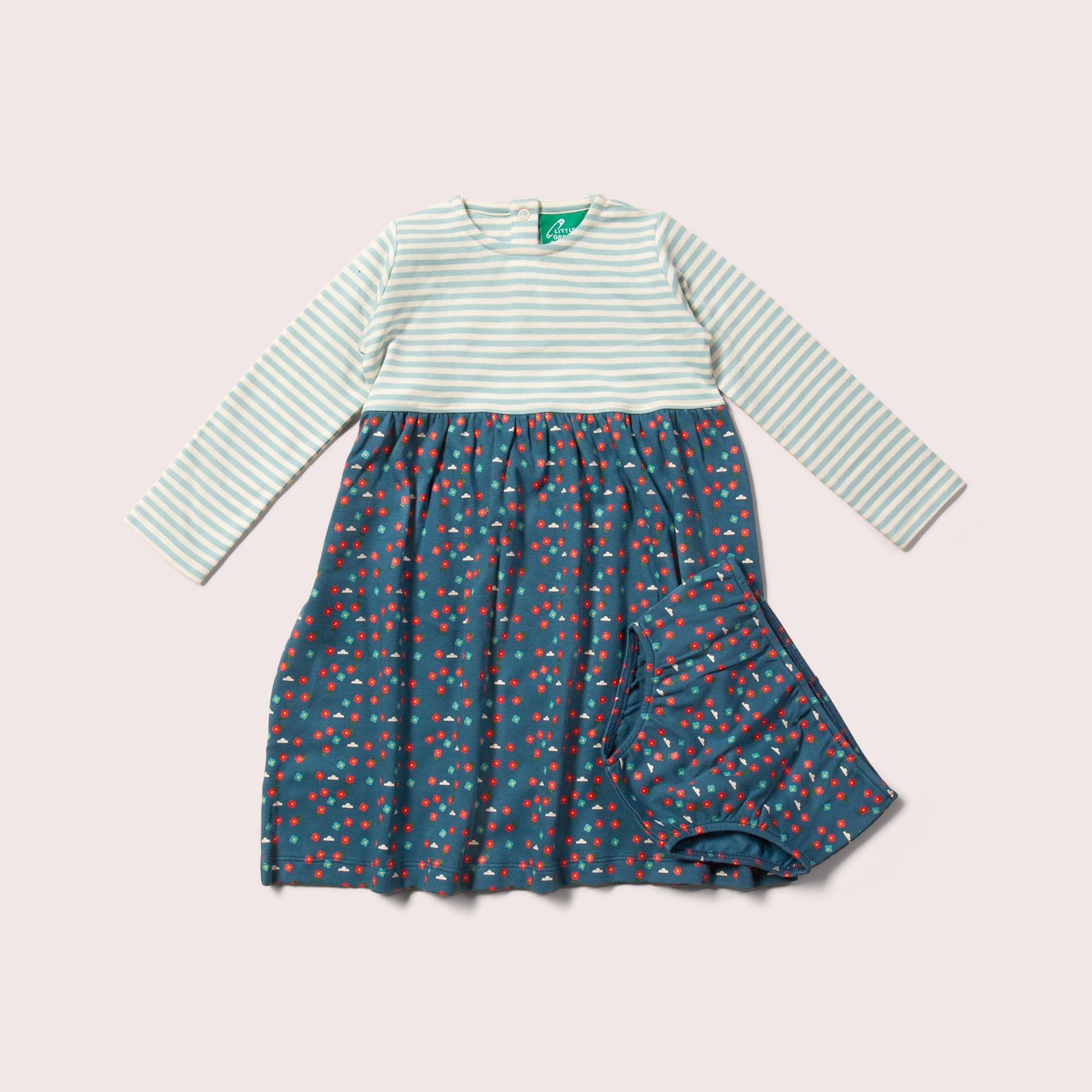 This dress is easy peasy to put on and so comfy, your little one will want to wear it every day! It's made using long-lasting organic interlock cotton, which is lovely and thick and very soft to touch. It sits just above the knee and has a wide skirt to give lots of room for movement as they play, and a fitted top with long sleeves to keep them warm when it's cold. Wear with our leggings on cooler days.