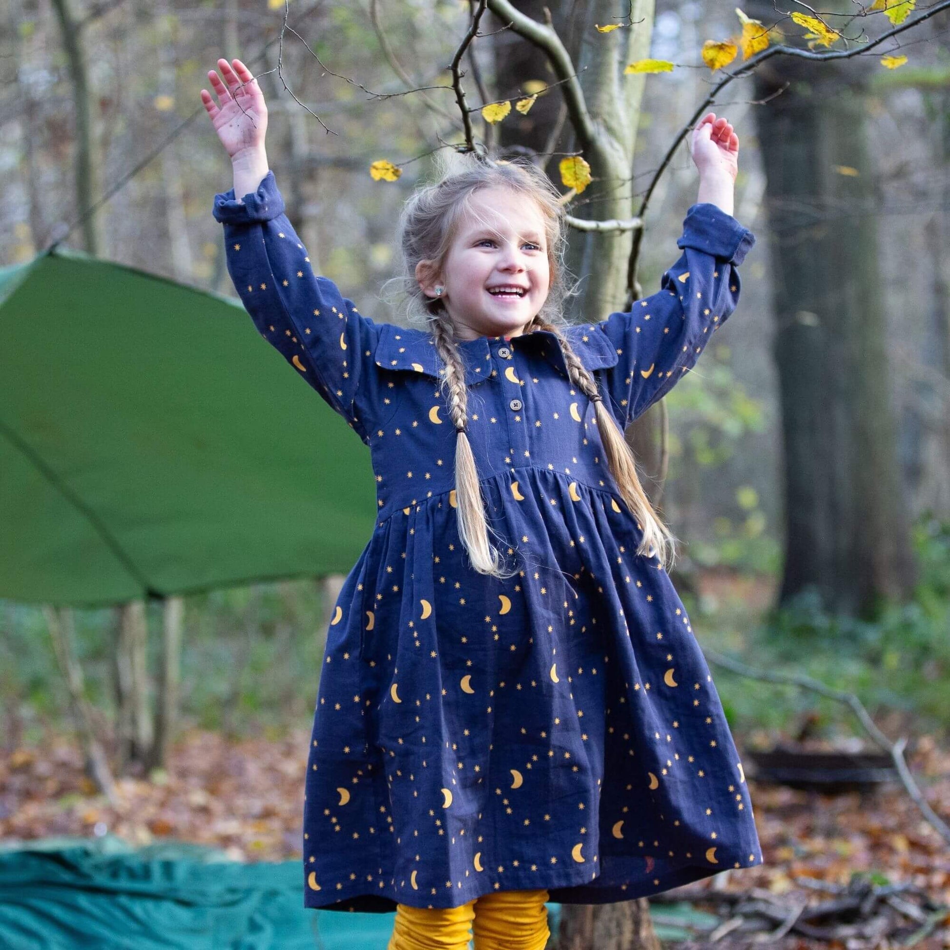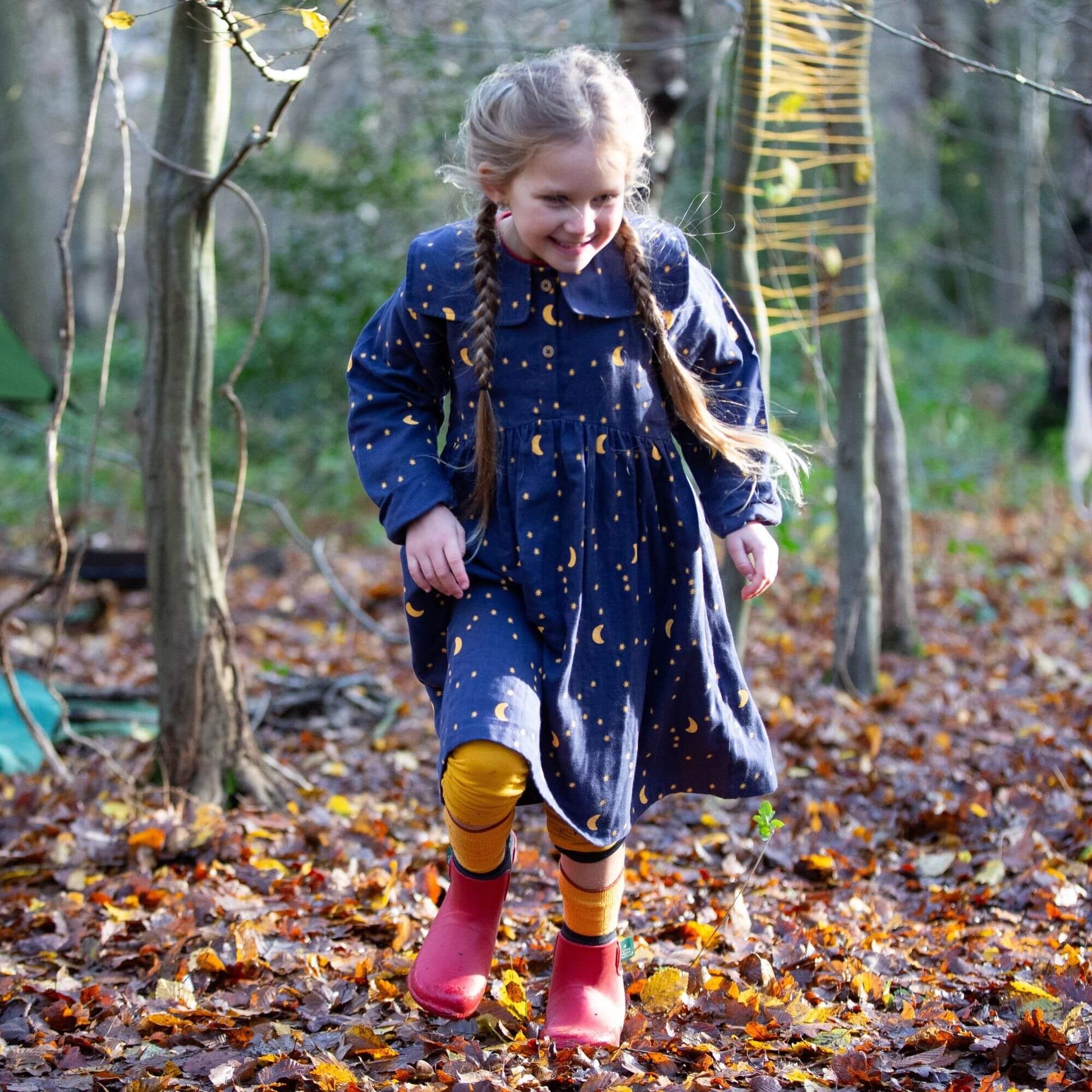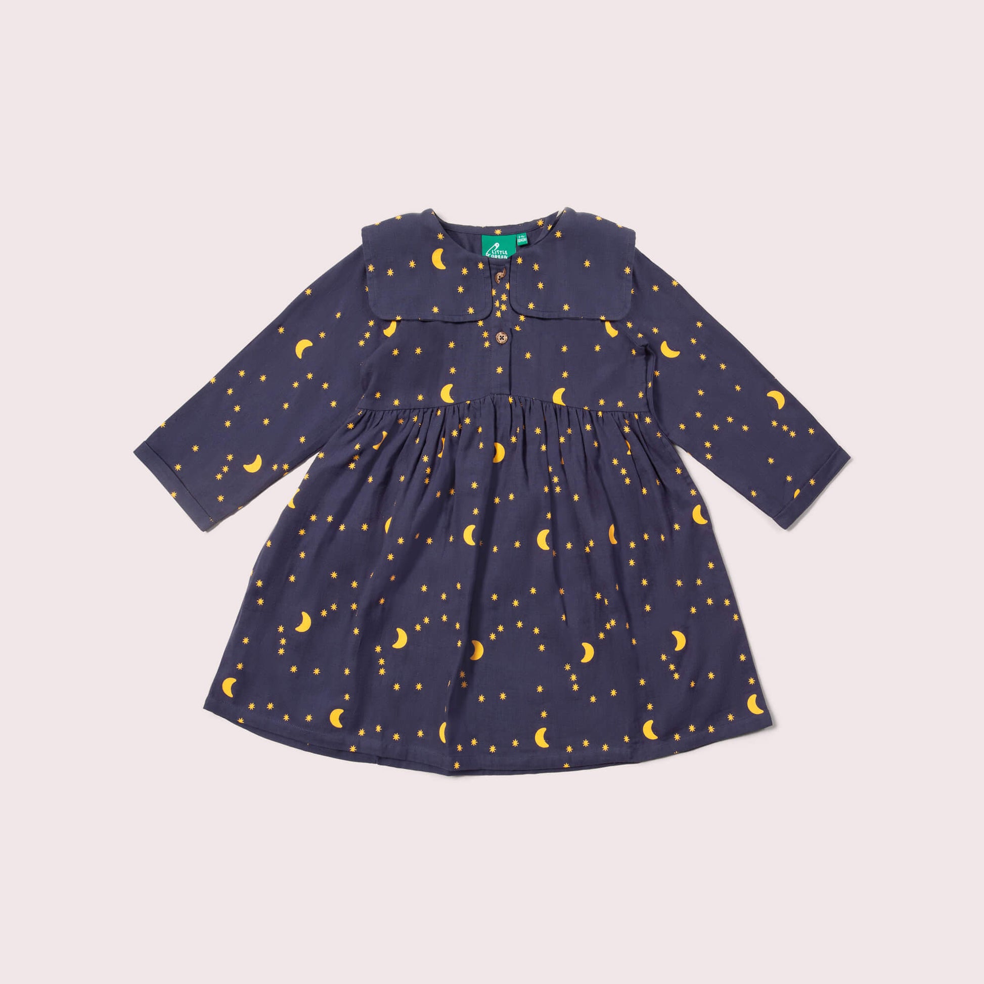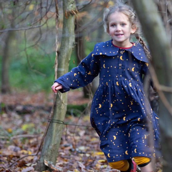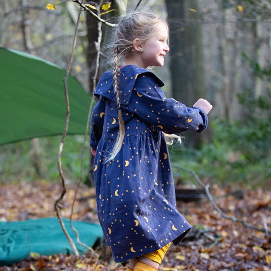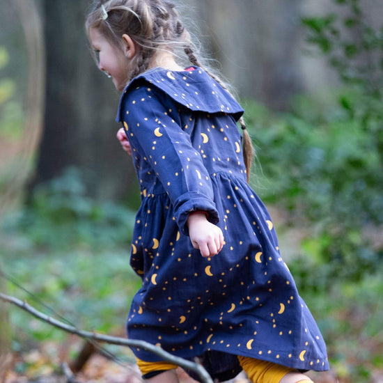 Perfect for parties or play, this comfy, classic dress comes with a beautiful statement colour and colourful print, made for celebrations! - 100% Organic & Fairtrade Double Cloth Cotton - Collar…