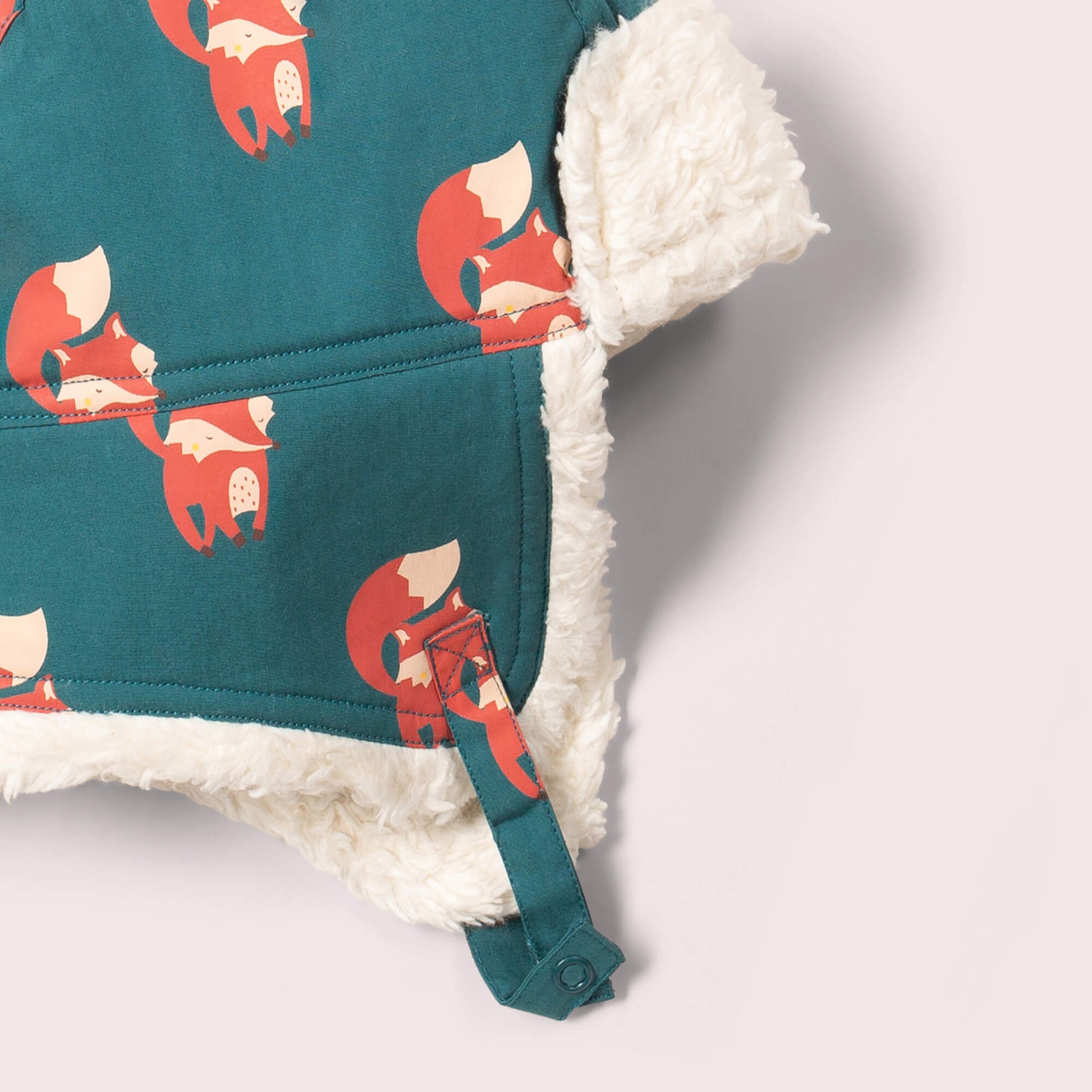 New style cosy hat for boys and girls, fully lined in soft organic sherpa. They come with a handy adjustable chin strap so it'll stay on however much fun they're having, plus we've made this style ext…