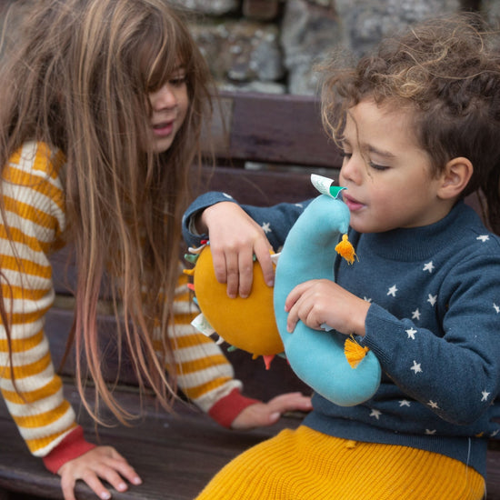 What's makes our toys so special? They're not just made from organic cotton on the outside, but the inside too! Wherever possible, we repurpose leftover fabric to make them, and for the stuffing, we've used offcut fabric and shredded it to make an all natural filling so nothing goes to waste. These all natural toys can be chewed, cuddled and cherished and make a lovely gifts.