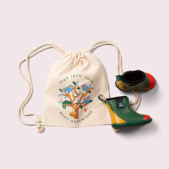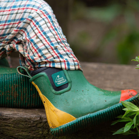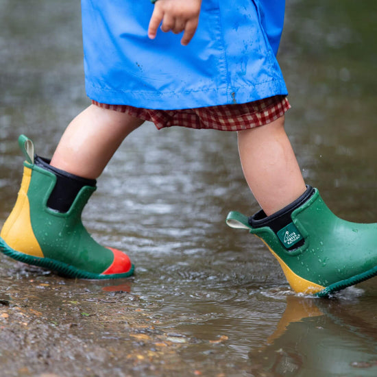 You've not seen boots like this before! These are the world's first Fair Rubber natural waterproof boots for kids, and we're extremely proud to be launching this exceptional new product. This lined ankle boot is comfy enough to be worn year round, not just on wet weather days, so you'll get lots of use out of them. They've been designed to be put through the paces by Little Explorers and come with gripped soles for extra stability, are 100% waterproof and come with a warm, soft, breathable, insulated lining.