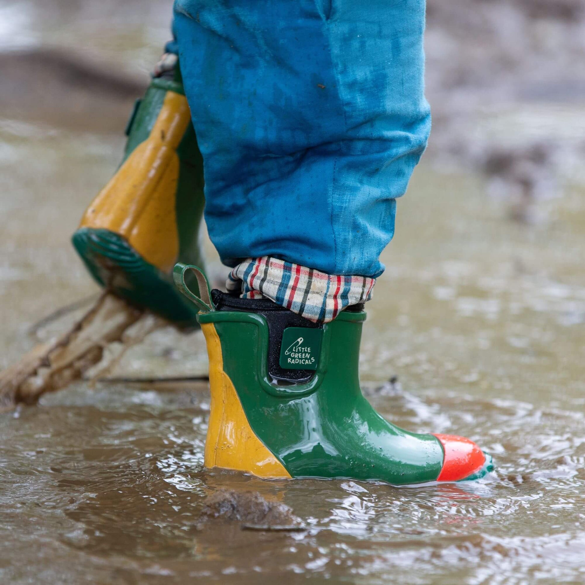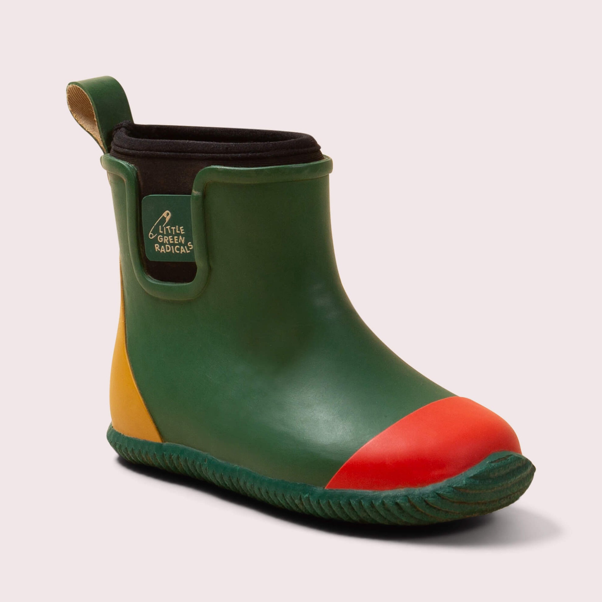 About our Colour Block Lined Ankle Wellington Boots You've not seen boots like this before! These are the world's first Fair Rubber natural waterproof boots for kids, and we're extremely proud to be l…