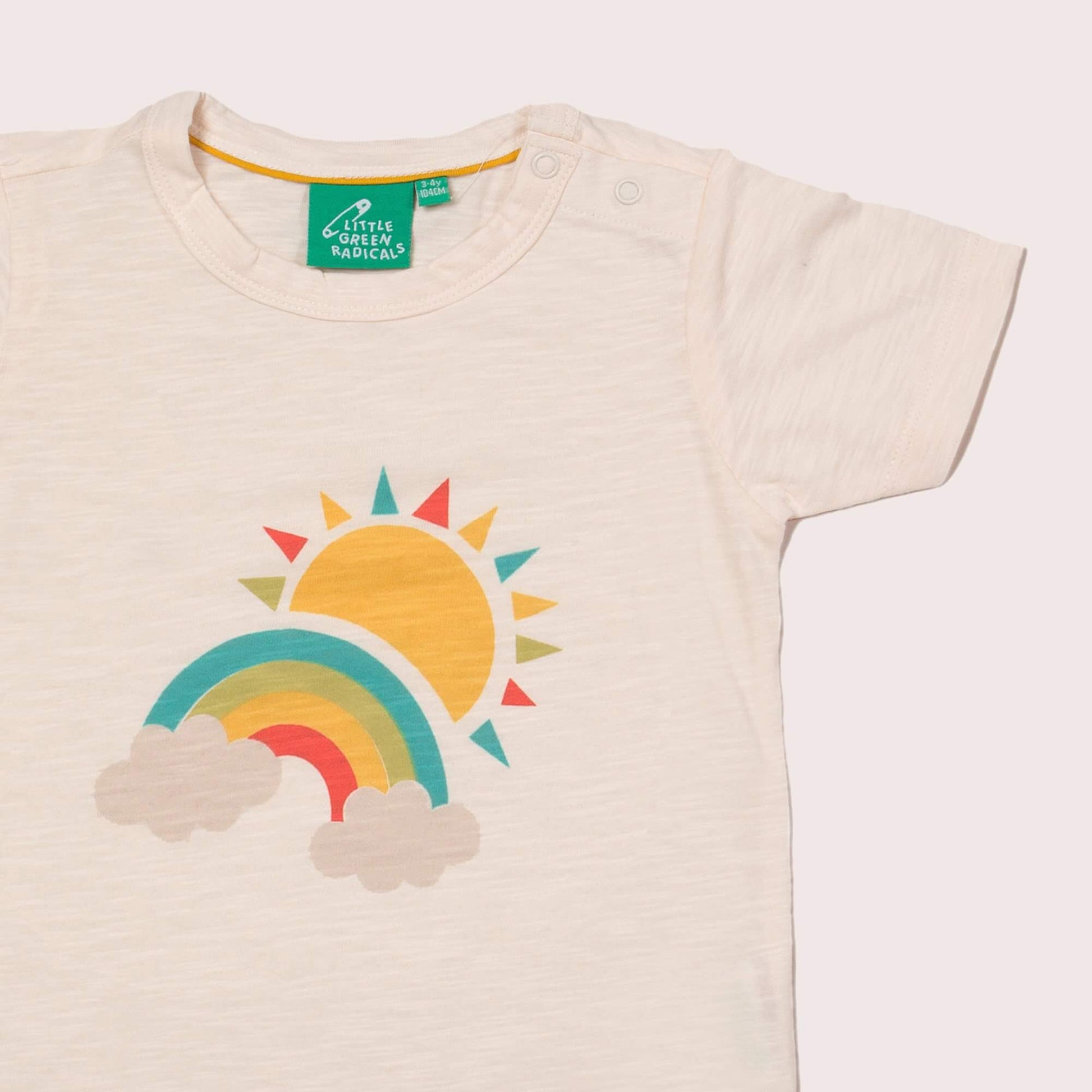 Beautifully soft and comfy to wear, this might just be their new favourite t-shirt! It comes with poppers on one shoulder for fuss-free dressing, a joyful sun and rainbow, and is made from light and breathable organic cotton fabric that will keep them cool and comfy while they play. Match with shorts and a hat for an adventure-ready outfit.