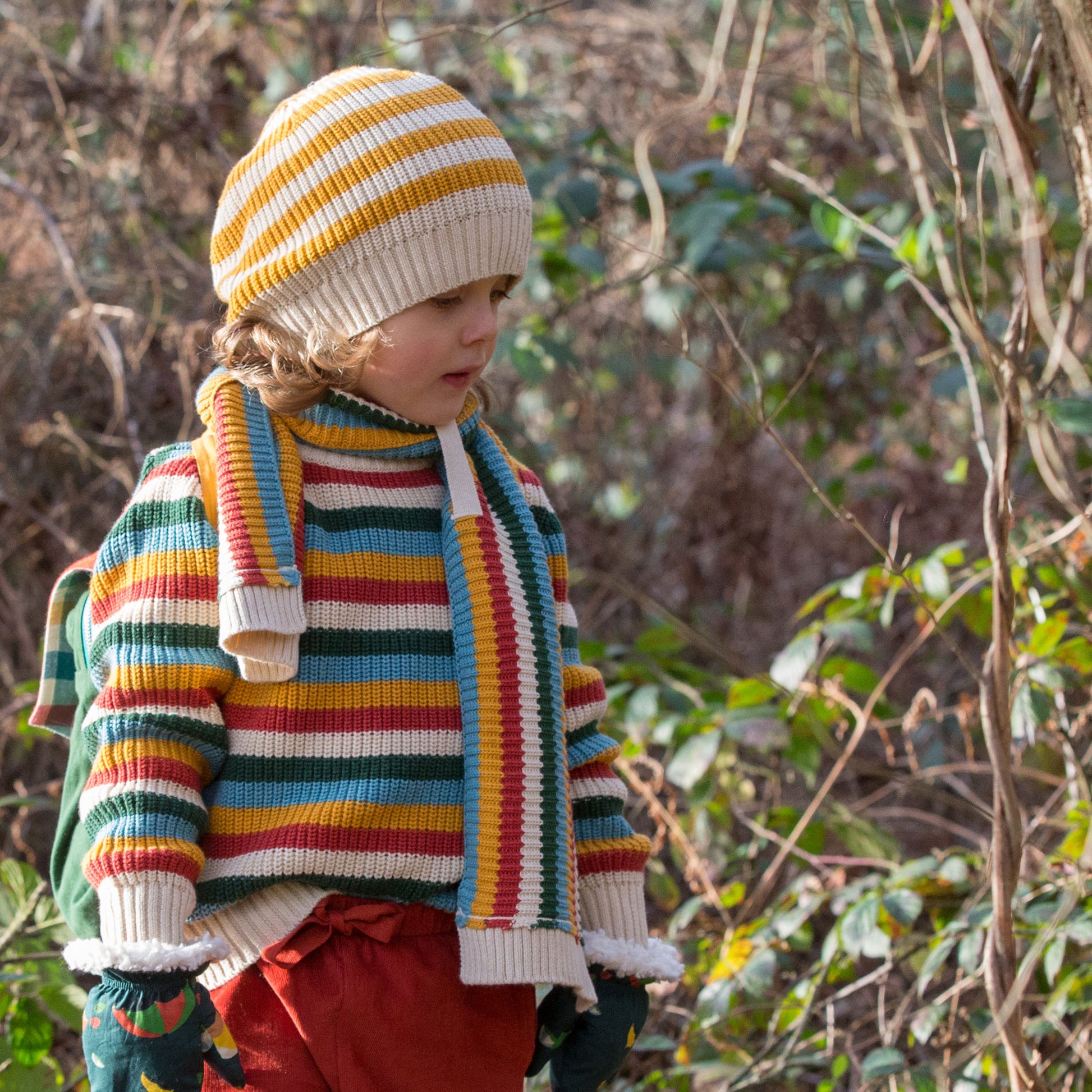 Keep them cosy on cold days with our snuggly knitted organic cotton beanie hat! Pair with a matching scarf for a lovely set or gift.