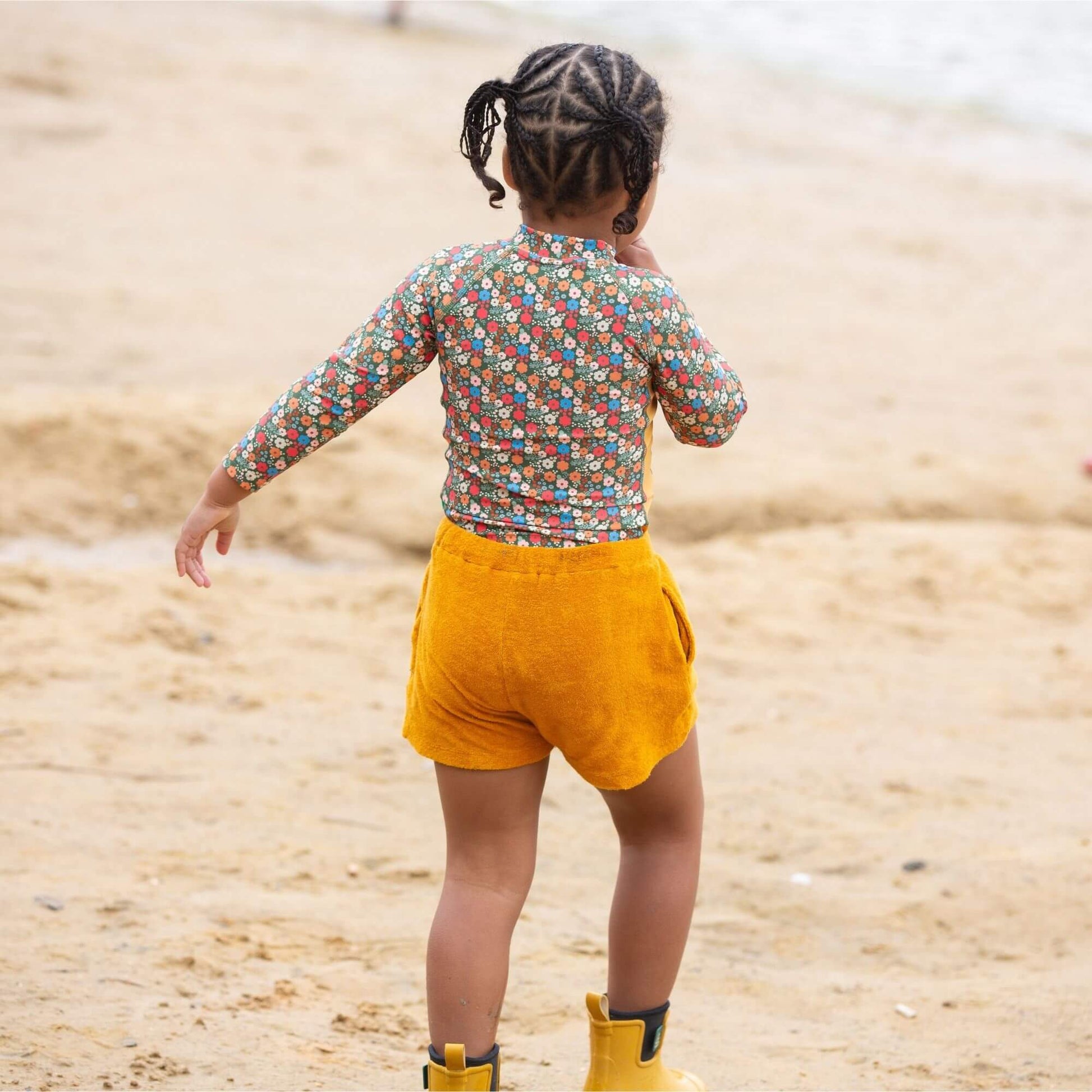 Splash into summer with our recycled swimwear! This long sleeve pull-on rash vest is soft and stretchy with flat seams for extra comfort, plus has UPF 50+ sun protection to keep them safe in the sunshine. Pair with our swim nappies, swimsuit or swim shorts and jump in!