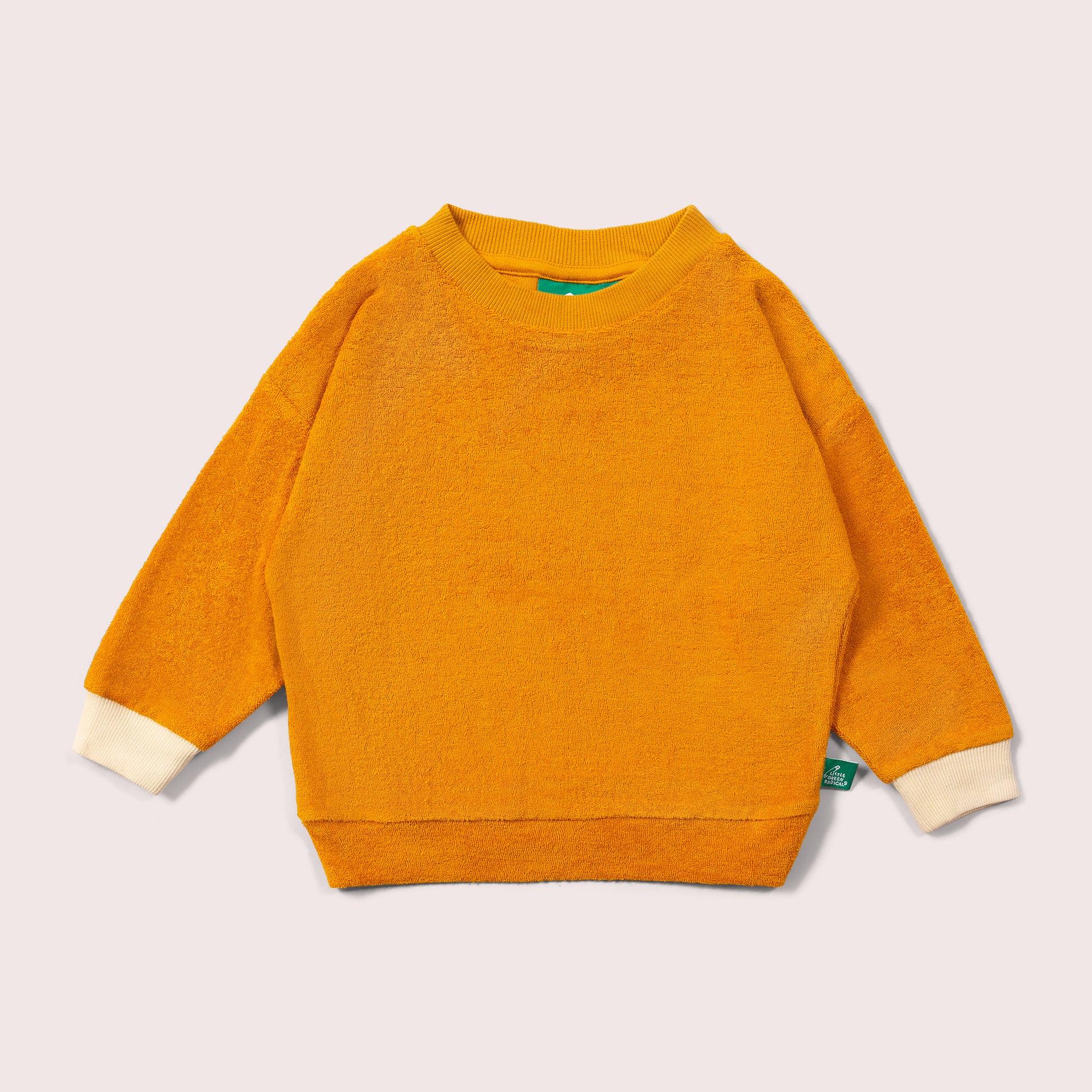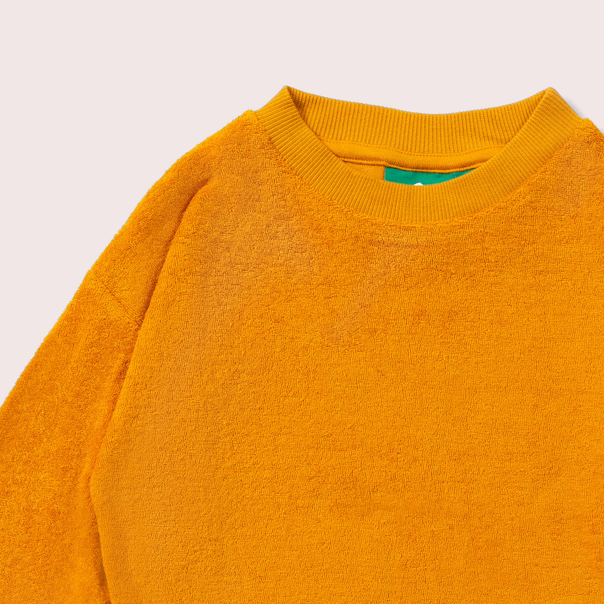 Slouchy throw on jumper for relaxing at home or for active days out and about. Perfect style to wear to and from the beach or pool! Made from organic cotton terry towelling that's soft against their skin with a comfy oversized fit that's really comfy to wear.