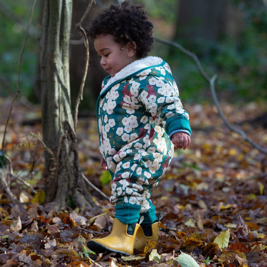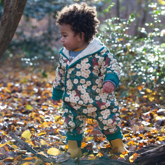 Our snuggly Snowsuits are made using a beautifully soft, breathable organic cotton sherpa lining on one side with a patterned, durable poplin layer on the outside. This is a warm and cosy style that c…