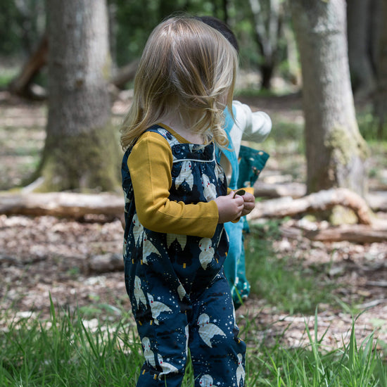 Loose-fit, comfy dungarees that are perfect for active playtimes. Mix and match with one of our organic cotton tops to make a cosy outfit for cooler days.