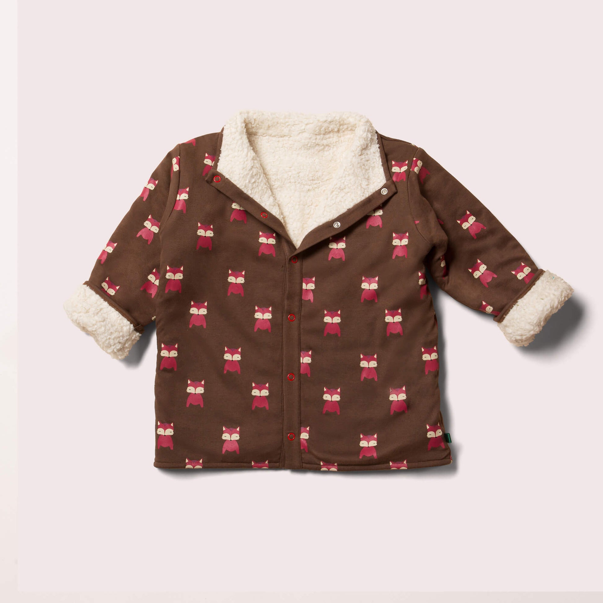 100% Organic & Fairtrade Brushed Cotton Thissnugglyjacket will keep little ones warm when they're out adventuring on cold and windy days. It's reversible (2 styles in 1!) and comes withsoft organi…