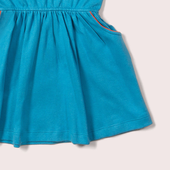 Ready for summer adventures! Pull-on and go dress designed for everyday play. It's made with a thick interlock cotton that's lovely and soft to wear, with a relaxed fit and wide skirt for extra comfort.