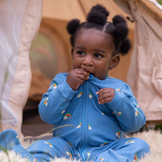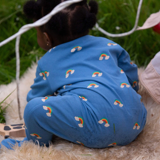 More about our Blue Rainbows Zip Organic BabygrowMade from beautifully soft, breathable organic cotton, this babygrow won't irritate your babies skin, so they can wear it all day and all night long. W…