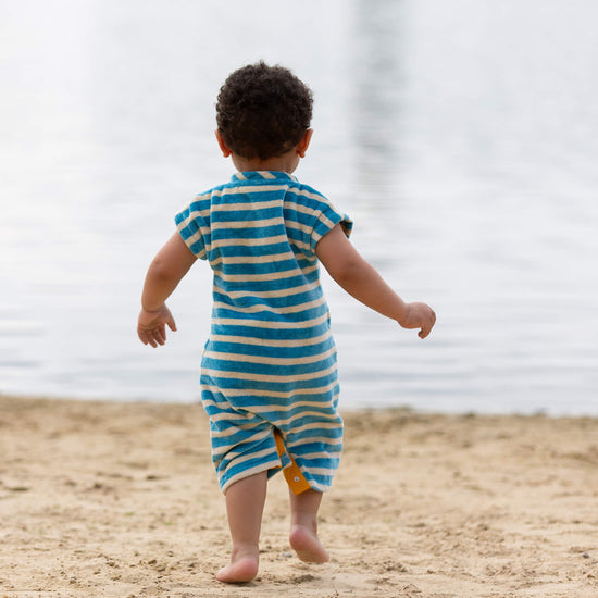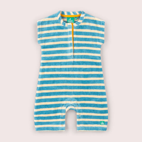 Blue Striped Organic Towelling Romper