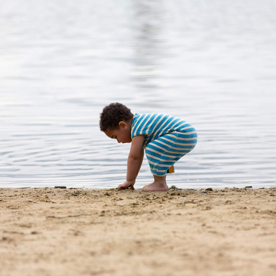 More about our Blue Striped Organic Towelling ShortieThe perfect summer holiday outfit to keep little ones and comfy, especially on the beach or by the pool. Pop on this soft all-in-one and they're re…