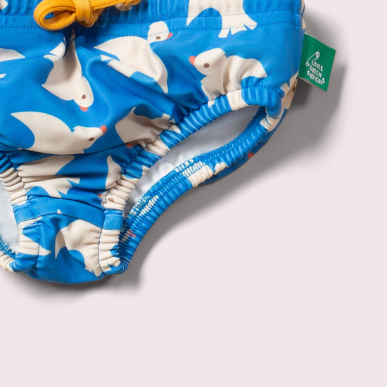 Splash into summer with our new swimwear collection made from recycled materials! Babies and toddlers will love playing around in the water and leaning to swim in these reusable swim nappies. They can be worn without any other nappy and come with elasticated leak-proof edges. We've used a soft, light fabric that doesn't absorb lots of water which can weigh down your child, so they'll be extra comfy in the water. These reusable nappies are soft and stretchy (so are easy to take on and off), plus have UPF 50+ sun protection to keep little ones safe in the sunshine. Pair with our recycled rash vests or swimming costumes and jump in!