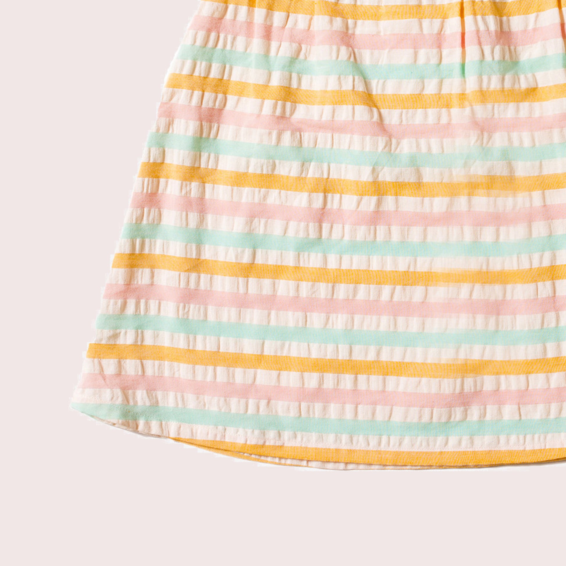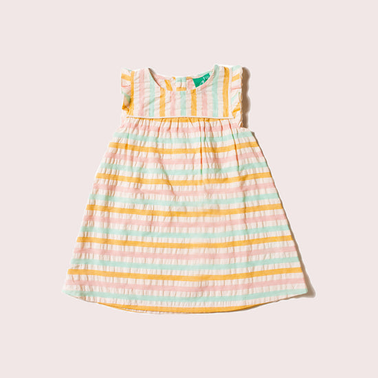100% Organic & Fairtrade Seersucker Cotton A timeless style in light and airy seersucker, this frill dress will keep little ones comfy and cool all day long. On the knee length. Summery seersucke…