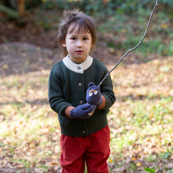 Inspired by handmade knits that are passed down to become heirloom pieces, our new knitwear uses timeless, unisex designs so they can be handed along from one child to another. This cardigan is made with a cosy, chunky organic cotton knit and has a comfy, loose fit that will keep little ones nice and snuggly. Explore our full knitwear collection.
