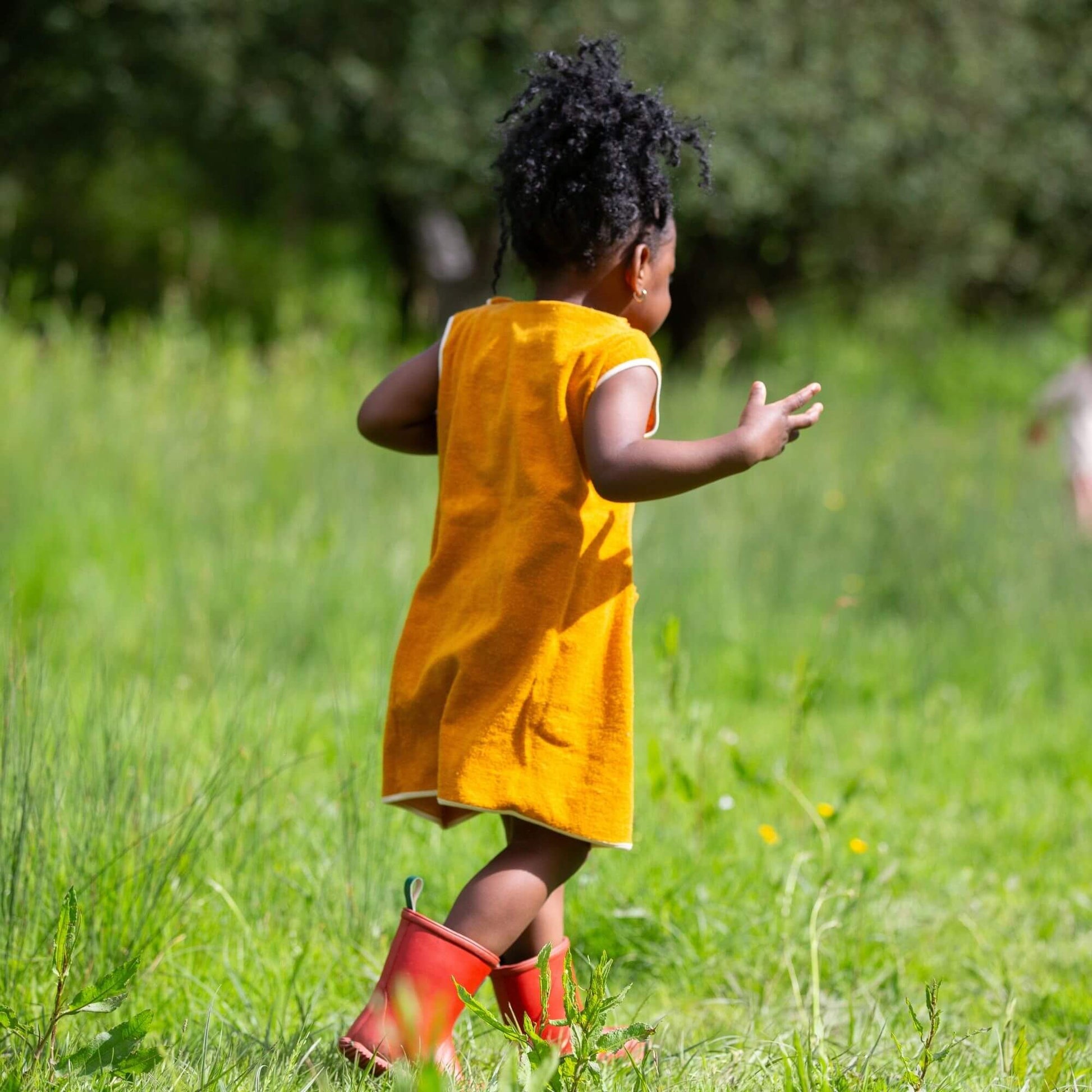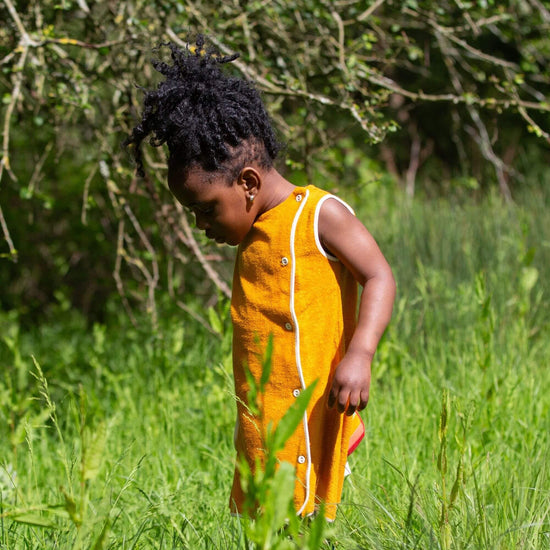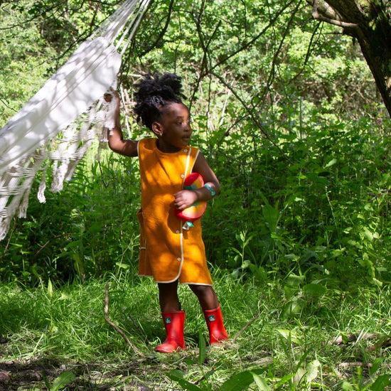 More about our Gold Classic Pinafore Towelling Dress A vintage inspired tunic, designed to be worn across the year as an everyday dress on warm days or paired with a cosy layer in cooler weather. Extr…