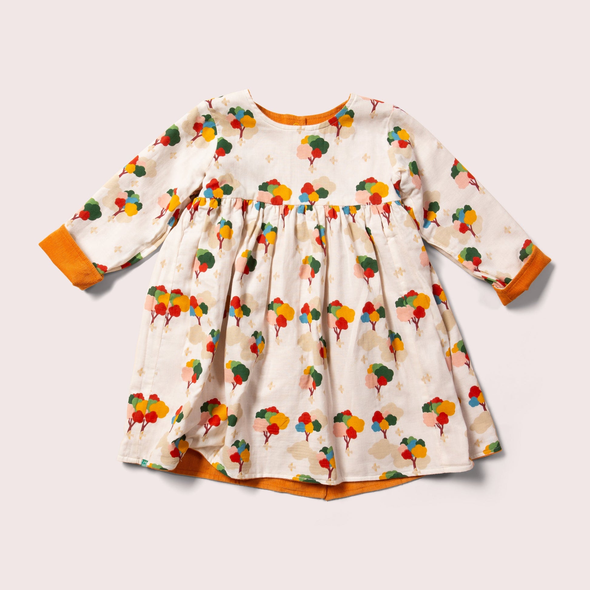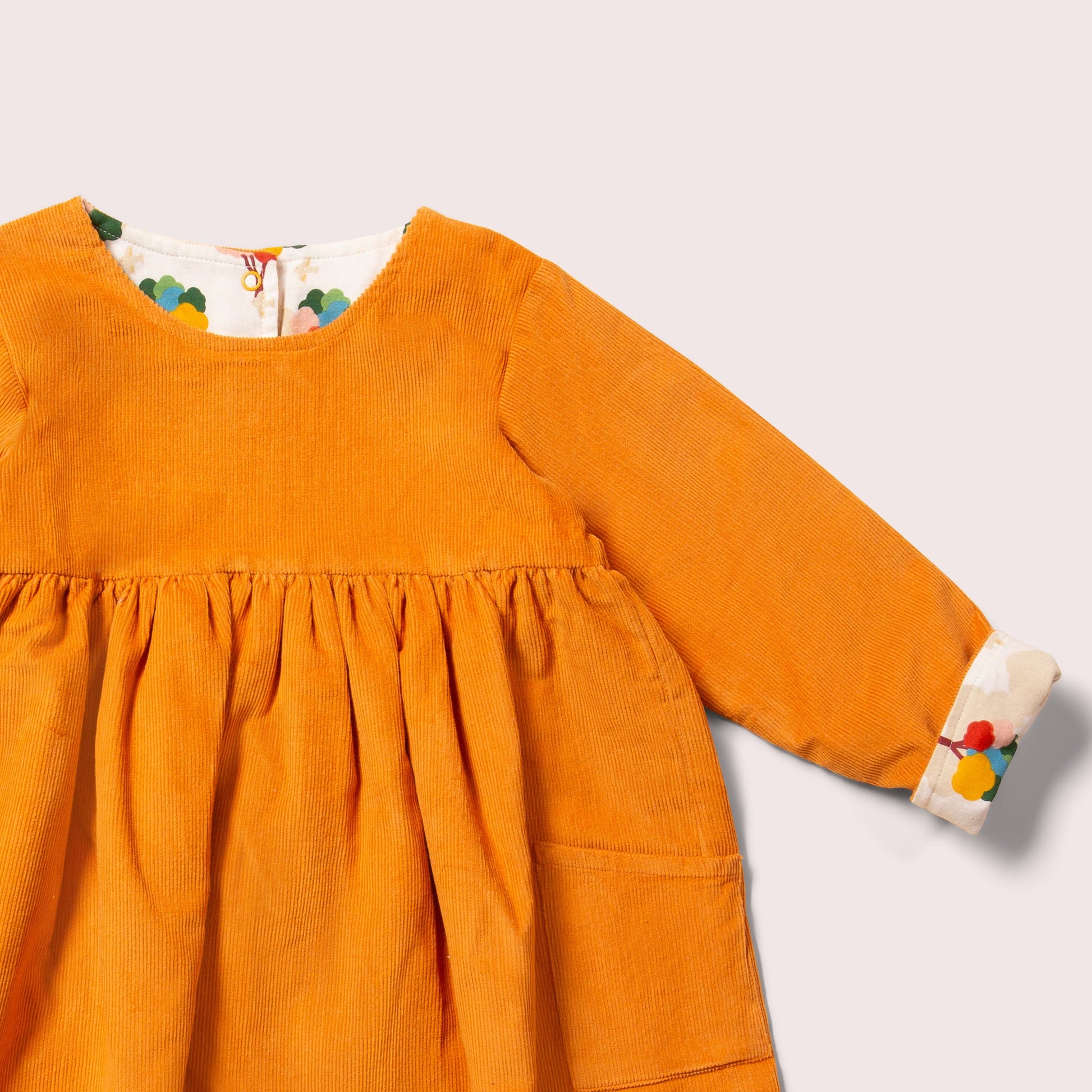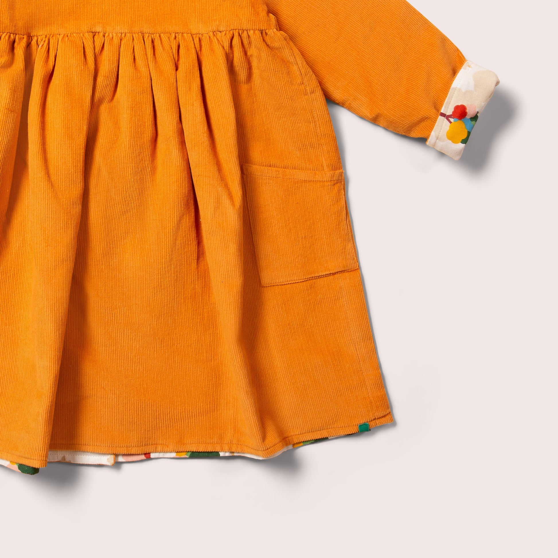 Twice as nice! Get two styles in one with this reversible, classic style they can wear day after day. It has cosy cord on one side (with little pockets on the front) and soft brushed cotton on the reverse. The double layer makes it lovely and warm, so it's the perfect dress to wear from autumn all the way to spring. We've used fantastic quality, long-lasting organic cotton fabric, and a timeless design, so is can be passed along from one child to another.