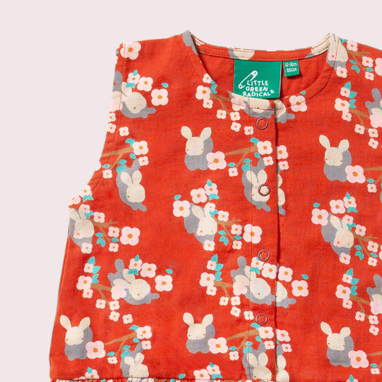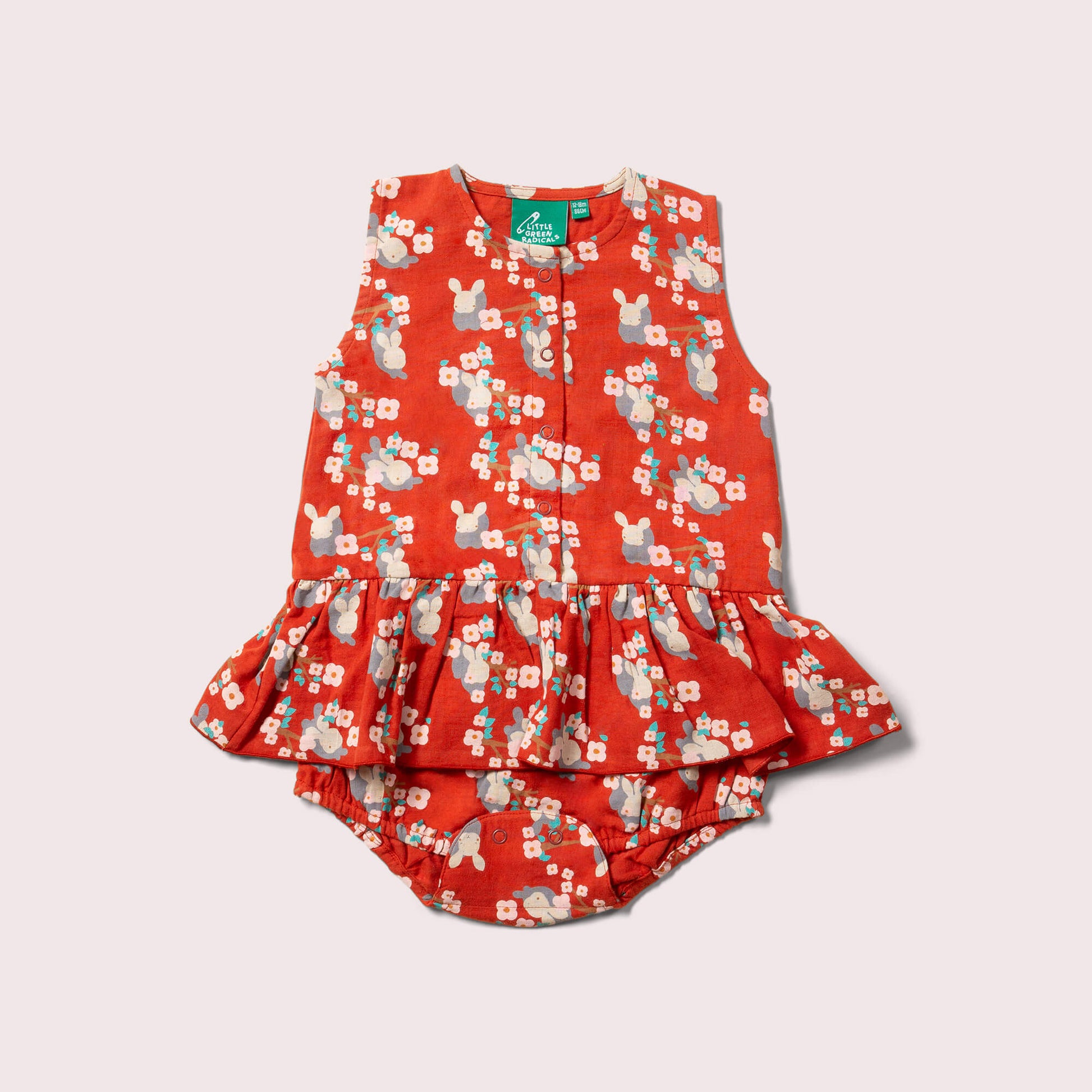 More about our Little Rabbits Ruffle RomperComfy all-in-one romper with frill skirt detail, made from breathable organic cotton for warm summer days. Extra Details: - 100% Organic Fairtrade Double C…