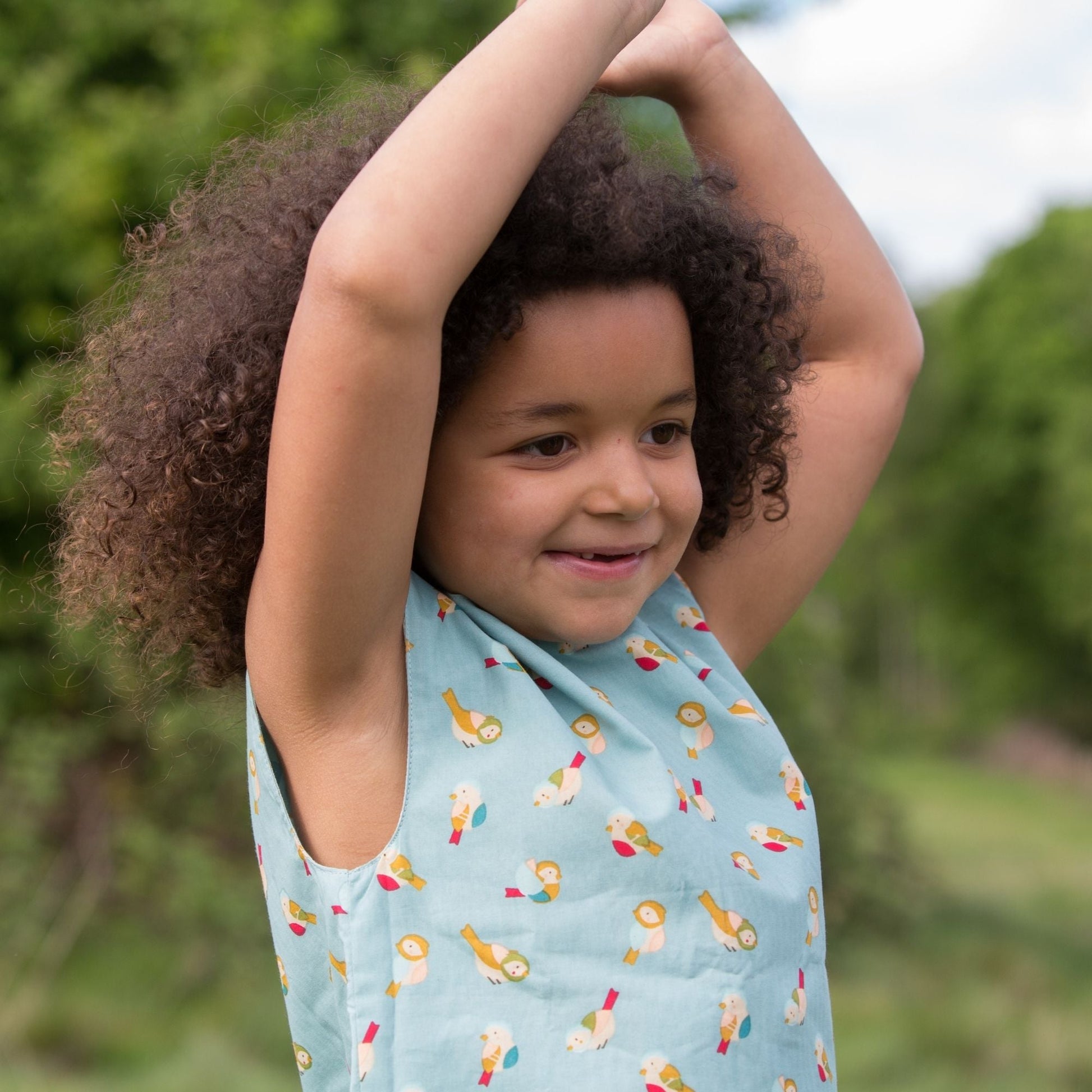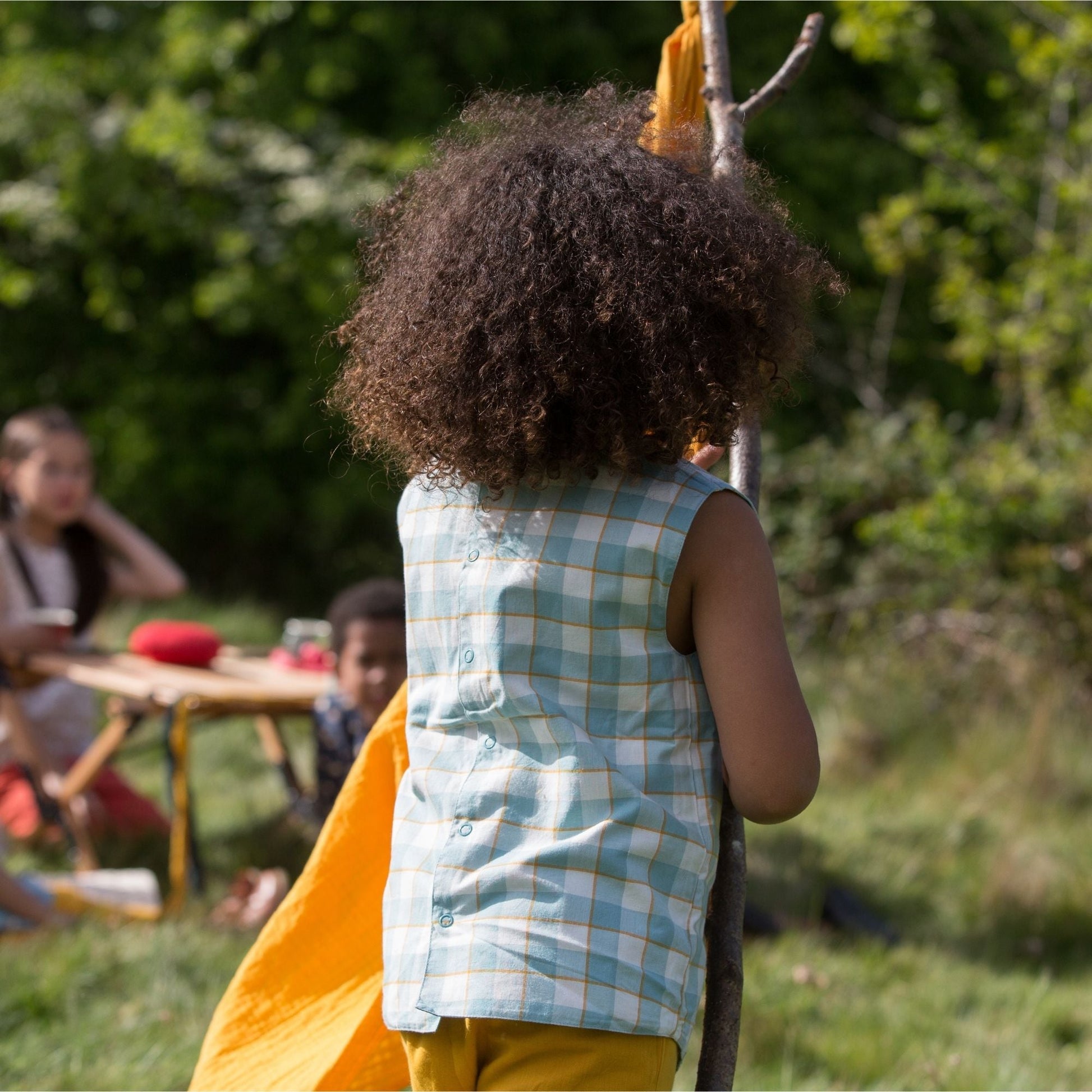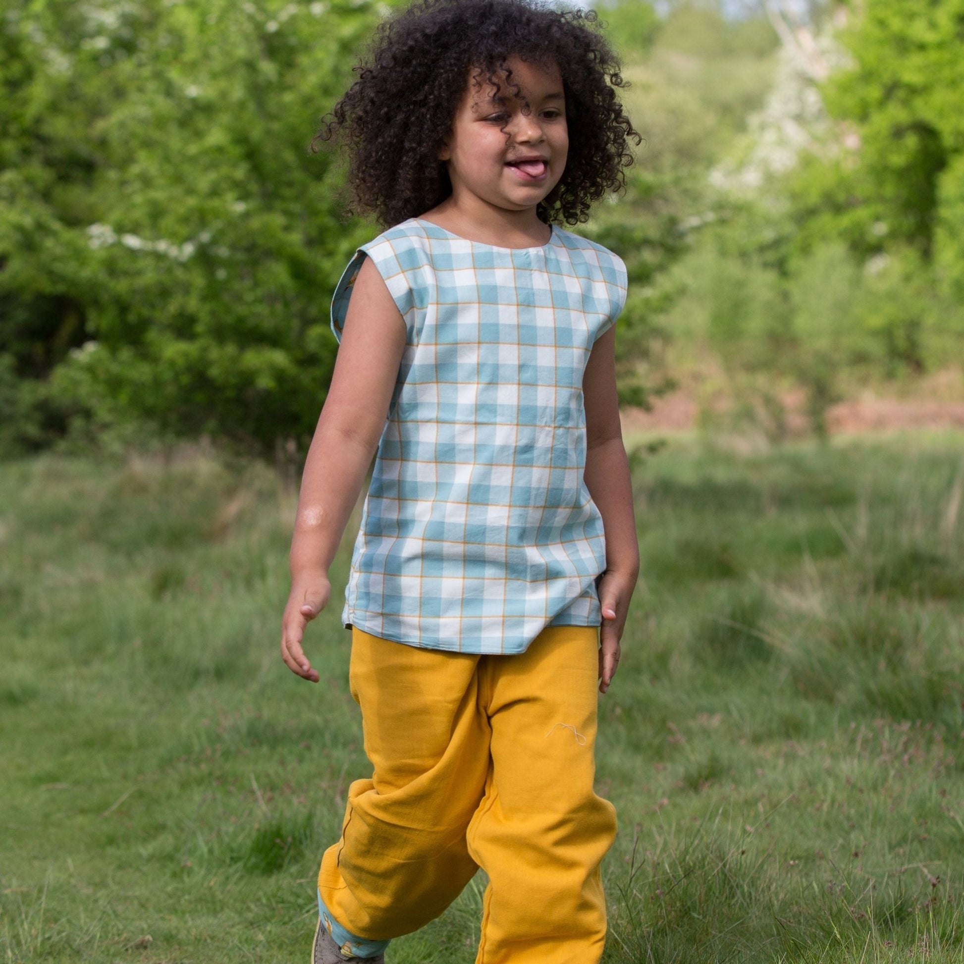 100% Organic Fairtrade Check & Poplin For those hot summer days of endless play, this sleeveless, loose fitting top will keep them cool in the heat. It's made from breathable organic cotton fabri…