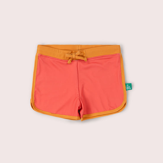 Soft and stretchy unisex recycled swim shorts with flat seams for extra comfort. UPF 50+ sun protection to keep little ones safe in the sunshine. Pair with a rash vest or swimming costume and dive in!