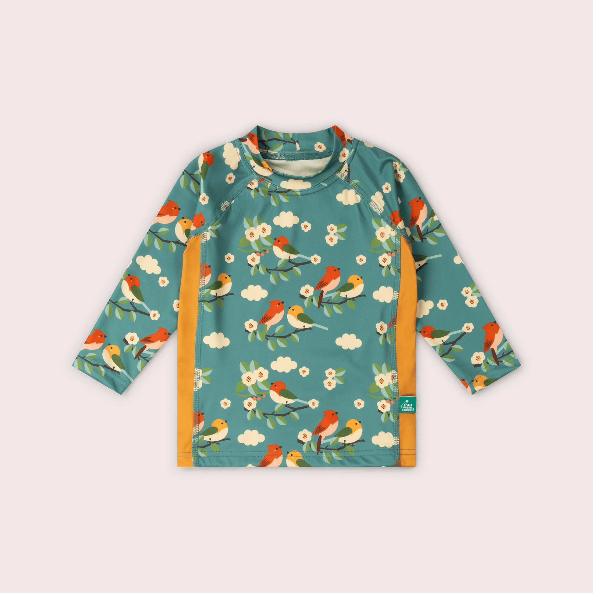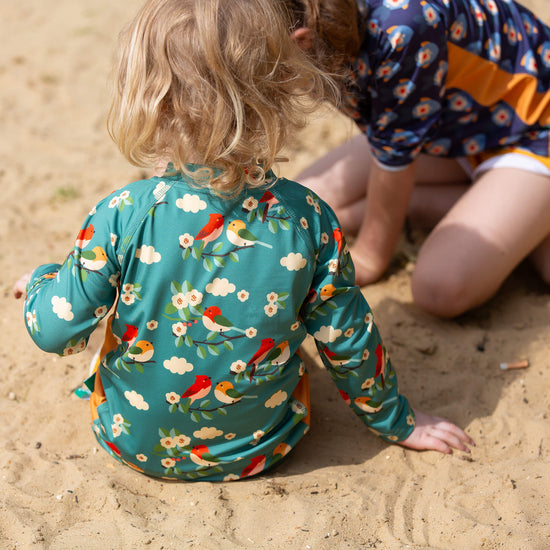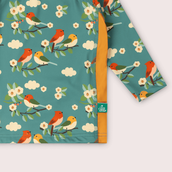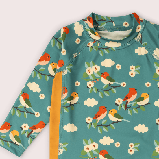 Turquoise Birds UPF 50 Sunsafe Long Sleeve Rash Vest