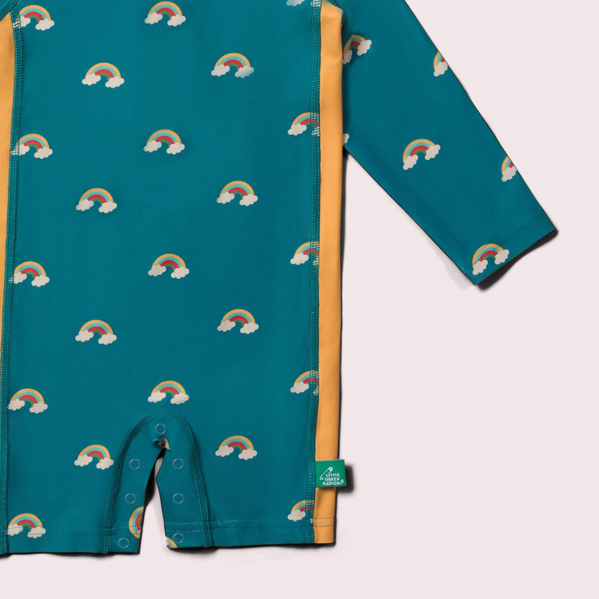 More about our Teal Rainbows UPF 50 Recycled Adaptive Sun Safe Sunsuit